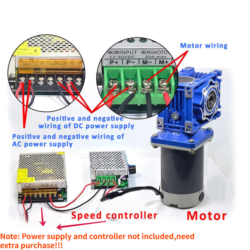 Store Categories Store Categories Outdoor Sports Business and industrial Batteries Home and garden Healthy and beauty Toys and doll TOOLS Accessory Other Product Description Application: Widely used in automatic barbecue, automatic mixing, automatic doors and windows, conveyor belt, conveyor, vending machine, feeder, calender, extruder, peeling machine, blender, cargo lifts, packaging machines, textile machinery, printing machinery, food machinery, vending machines, automatic tables, office equipment, medical equipment, etc. Feature: All metal gears, carburizing hardening, to ensure material toughness Rotor part of the pure copper wire, the output torque 2200GS high-strength magnetic tile, smooth operation, no jitter With self-locking, power outage to stop, reduce equipment wear and tear Parameter: Voltage: DC12V/24V Motor shaft diameter: 12mm Current: 13A Load speed: 1800 rpm Rated speed: 2100rpm Power: 120W Motor size: 90*167mm(3.5*6.6in) Output shaft diameter: 12 * 38mm (0.47*1.5in) Can the speed be adjusted: Yes Forward and reverse: Yes Reduction ratio: 5/7.5/10/15/20/30/50/60/80/100 Includes: 1 x Set of motor Note: Speed controller and power supply not included, please contact us if needed. Payment Policy Shipping Policy Returns Policy About Us Contact Us Payment Policy 1. We accept PayPal only. 2. All major credit cards are accepted through secure payment processor PayPal. 3. Payment must be received within 7 business days of auction closing. 4. If you have bought multiple items from me, you can send me one payment for all the items instead of paying for them individually. When you click the Pay Now button, eBay will automatically determine if there are other items you have won or purchased from me and will combine them for your review. 5. NOTE: Import duties, taxes and chargers are not included in the item price or shipping charges. These charges are the buyer's responsibility. Please check with your country's customs office to determine what these additional costs will be prior to bidding buying. Shipping Policy 1. We Ship to Worldwide. 2. Items will be shipped within 7-14 business day on payment received. 3. Item are shipped from Shenzhen using Airmail, reach most of the countries within 10 to 35. 4. Delivery time depends on destination and other factors, it may takes up to 40 business days. 5. We are not responsible for undeliverable address, we reserve the right to charge the shipping fee again for returned items due to wrong address. 6. If you do not receive your item by 30 business days, Please feel free to contact us via ebay mail system, we will try our best to resolve any problems with you. Returns Policy 1. You have 7 day to contact us and 10 days to return it from the date it was received. If this item is in your possession more than 7 days, it is considered used and WE WILL NOT ISSUE YOU A REFUND OR REPLACEMENT.There are NO EXCEPTIONS! 2. All Returned items Must Be in the original packaging and you MUST PROVIDE us with the shipping tracking number, specific reason for the return,and your ebay ID. 3. We will refund YOUR FULL WINNING BID AMOUNT, upon receipt of the item in its original condition and packaging with all components and accessories included, AFTER BOTH Buyer and Seller cancel the transaction form ebay.OR, you may choose to have a replacement. 4. Return shipping is to be paid by the Buyer. About Us 1. We strive for our customer satisfaction at best possible. If you have any questions, please feel free to email our service specialists 24 Hours a Day, 7 Days a week. We will reply you ASAP. If no response within 24 Hours, please check the spam in your mail box. 2. We greatly appreciate your POSITIVE feedback. Please do NOT leave negative feedback without asking for help. Our aim is to provide Top Level Customer Service, normally so we will try our best to solve any problem you have. 3. Please DON'T leave negative or neutral feedback if you haven't received item in 30 days, because we have mentioned the shipping time repeatedly. Contact Us Our customer-oriented service strives for positive feedbacks with all 5 star selling ratings . Please feel free to contact us via eBay message once you have any question before you giving us negative feedback or open case. Business time: GMT8 (9:00-18:00) from Monday to Friday Copyright © 2023 Dianxiaomi