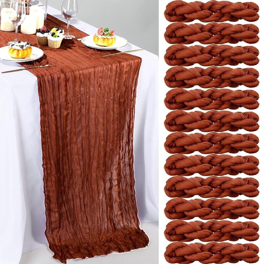120"x29" Rustic Cheesecloth Set - 24 Light Weight Table Runners in Rust Color