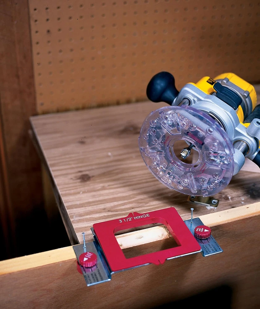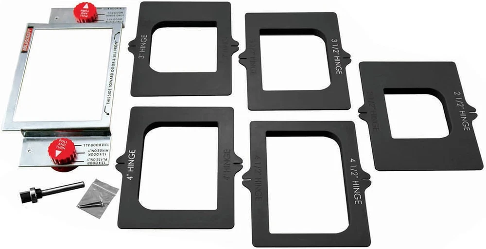 Install hinges from 2.5 in. to 4.5in. Sturdy steel frame can be used on the door and the jamb, with or without the stop installed. Adjustable cams automatically align templates for 1-3/8in. or 1-3/4in. doors. Dual-position templates rotate template to achieve 5/8in. or 1/2in. radius mortises Product Description Increase security and privacy in your home by replacing doors without damaging the door or jamb with the HingeMate200. By routing matching mortises for hinges into the door and jamb, you won’t have to tear a hole in the wall just to hang a better wooden door. From the Manufacturer Increase security and privacy in your home by replacing interior and exterior doors without damaging the jamb or door frame with the Hinge Mortise Kit from Milescraft. By routing matching mortises for hinges into the door and jamb, you won't have to tear a hole in the wall just to hang a better wooden door. Featuring an easy to use drop-in template design with a sturdy steel frame, this kit comes with everything you need for most hinges on 1-3/4-Inch and 1-3/8-Inch doors and jambs. Gone are the days of chiseling or setting stops and pegs to rout a mortise. Simply set the door thickness selector knob, attach to the door or jamb, drop in the plainly marked template for your door hardware, and rout! Includes a durable tungsten carbide tipped 1/2-Inch router bit with ball bearing, eliminating the need for guide bushings. Also includes an Easy Measure Guide where we have done the math and made it simple for you to get standard industry placement of your door hardware. Centered tabs on each template ensure complete accuracy. This product is packaged in a clamshell that snaps shut to act as a hanging storage container for your templates when not in use. Simply cut off the package seal edge when opening for reuse. Includes the following templates: HINGE MORTISES (For square AND rounded hinges): 2-1/2, 3, 3-1/2, 4, and 4-1/2-Inch hinges. Some chiseling required on templates with square corners.