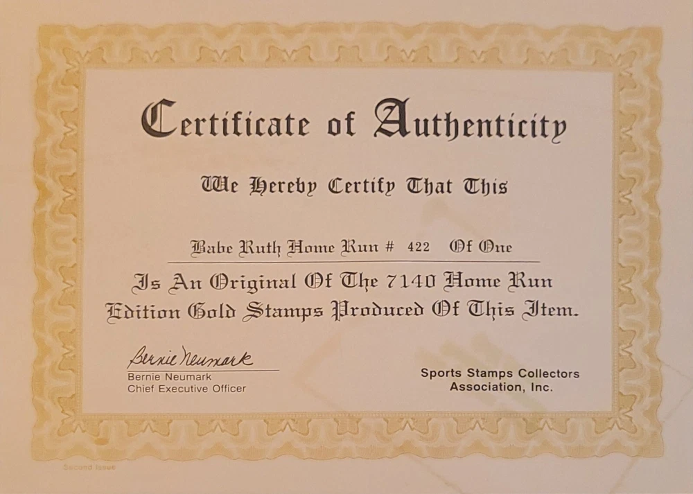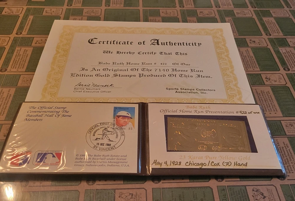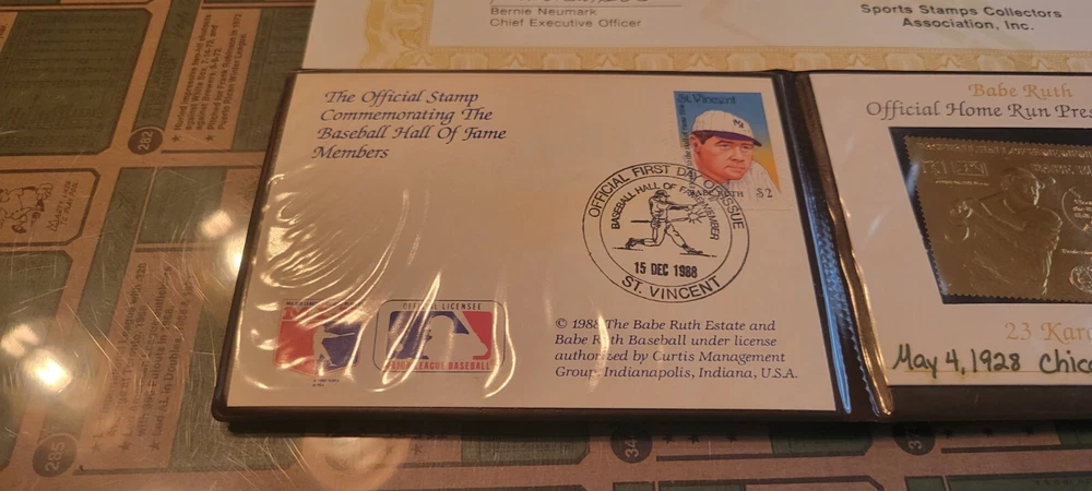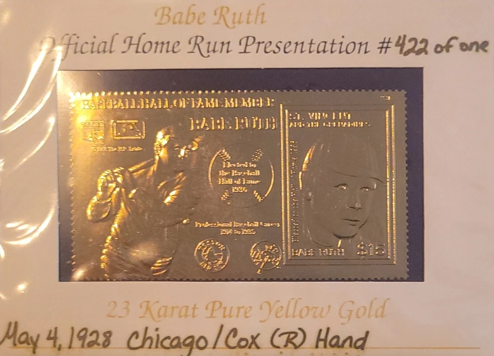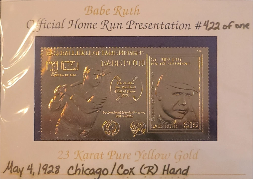 12/15/88 Hall Of Fame Member Babe Ruth Official First Day Home Run Stamp Gold