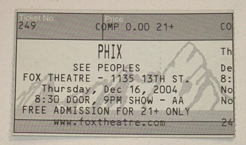 12/16/04 Fox Theater Boulder PHIX See Peoples Concert Phish Tribute Ticket Stub