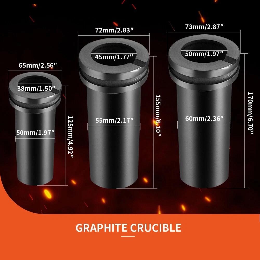 Specification Name:Graphite crucible Model:SG-SMGG Material:graphite Operating temperature:≤1800℃ Capacity:1KG/ 2KG/ 3KG Product Size: φ73mm&φ60mm*170mm (3KG) φ72mm&φ55mm*155mm (2KG) Φ65mm&φ50mm*125mm (1KG) Product weight:0.7KG Advantages 1.Use temperature is less than or equal to 1800 ℃ 2.Good thermal and shock resistance. 3.The high density of graphite crucible makes the crucible have good thermal conductivity 4.The surface of the graphite crucible has a special glaze layer and dense molding material, which greatly improves the corrosion resistance of the product and extends its service life 5.3KG/2KG/1KG capacity Benefits for you 1.The use temperature is less than or equal to 1800 ℃, can be used to melt gold, silver, copper, aluminum, iron and other precious metal 2.Good thermal and shock resistance. Good thermal conductivity. Fast heating speed 3.The high density of graphite crucible makes the crucible have good thermal conductivity 4.The surface of the graphite crucible has a special glaze layer and dense molding material, which greatly improves the corrosion resistance of the product and extends its service life 5.334ML capacity: 3KG copper can be holded. 6.4KG gold, 3.5KG silver, 0.9KG aluminum Note: The graphite crucible will hold different weight according to the different density of metal material. Package Includes: 1pc Graphite Crucible Notice: 1. Please allow 2-3% error due to manual measurement. Please make sure you do not mind before you bid. 2. The colors may have different as the difference display, please understand.