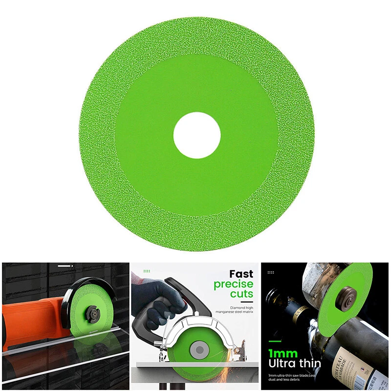 Features: *Fast, Precise Cuts: High-temperature-resistant diamond blades reduce vibration and enable faster cuts. Sharp, versatile with one piece, small slot, cut and abrasion resistant. *Scope: It is suitable for smooth cutting and grinding of glass, jade, crystal, wine bottles, ceramics, ceramic tiles and other materials. *Chip-free cutting: the 1mm ultra-thin saw blade does not damage the surface of the object, the grinding force is even, and the finish is good. Low grinding noise, less dust, less dirt and first-class cutting! *EASY TO USE: Designed for use with the Model 100 angle grinder, it is easy to install and use and will stand up to the rigors of dry/wet cutting and long continuous cuts. *Advanced Materials: This product adopts a high-quality diamond, a new soldering process, and an upgraded blade, which is more convenient, safer and more sturdy . Specifications: Colour :Green Material: Diamond Size: 100*20*15*1mm Package: 1/2/3 Pcs Multifunctional Dedicated Diamond Saw Blade Notice: Due to manual measurement, please allow slight measurement error. Due to the different display and light effects, the actual color of the item might be slightly different from the color displayed on the picture.