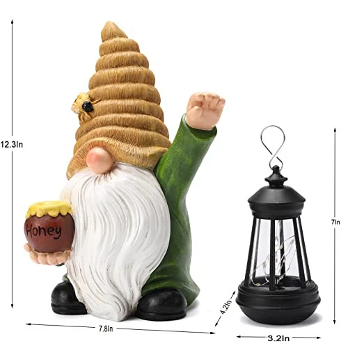 30 Days Return Policy Fast Delivery Trusted seller 12.3''Solar Garden Gnome Outdoor Decor Honey Bee jar Gnome Statue with LED Lantern Fall Patio Yard Art Decoration Christmas Gardening Birthday Gifts for Women Mom, Honey Bee Gnome Product Description 【Premium Quality】 This garden gnome statue made of durable resin materials, waterproof and anti-fading. The product is equipped with advanced solar chips, which can light up for long time; Whether it's spring, summer, fall or winter, the solar bee gnomes are a great choice for indoor or outdoor decorating 【Solar Light】 Please turn on the button at the side of the lantern before use; Then keep the honey bee gnome statue under the sun to ensure sufficient sunlight; Charging in the daytime and automatically lights up at night, lighting up a corner of the garden with its warm light 【Garden Decor】Our outdoor garden gnome statues make a great addition to the beauty of any lawn or garden. You can use this cute gardening props to enhance your landscaping projects, it can match various garden and patio designs,definitely brings delight to your garden visitors. 【Separately Use】The lantern and the dwarf statue can be used separately, which is more convenient. 【Enjoyable Presents】This yard gnome garden décor figurines is one of the best gifts. Our garden gnome statue and solar light can be applied to light up the backyard, lawn, pond, swimming pool or garden, and can be given to your family and friends on Mother's Day, Christmas, birthday and housewarming. Shipping Returns Payment Shipping Shipping is FREE to all addresses other than APO/PO boxes in the lower 48 states. All our stock ships from US-based warehouses. Shipped via USPS or UPS (depending on location and package weight) Unless stated otherwise, all orders will ship within 24-72 hours of your payment being processed. Check our feedback to see the great reviews of FAST shipping we offer. Returns As our valued customer, we will do our best to make sure the product you receive arrives to you on time and as expected. If you are not satisfied with your purchase, please contact us within 30 days of receiving your order to process a return. Payment We currently accept payment via eBay managed payments only. Once payment is cleared, we will dispatch your shipment within 1-3 business days. Please refer to the "Shipping" tab for more information regarding shipping speed to your destination.