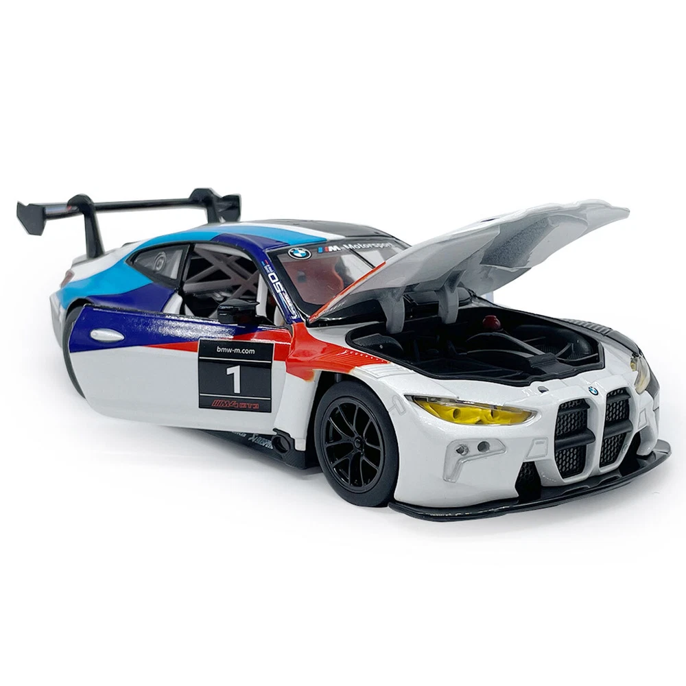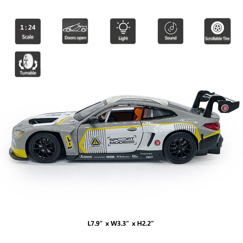 1/24 2022 BMW M4 GT3 Model Toy Car Diecast Toy Vehicle Metal Alloy Toys for Kids Item Type Diecast & Toy Vehicles Scale 1:24 Material Diecast and ABS Colour White and grey, as picture shows Dimension About L7.9" x W3.3" x H2.2" (L20.0 x W8.5 x H5.5 cm) Vehicle Type Racing Car Function *No pull-back function, can be push forward and backward *The front two wheels can turn left and right *Two doors and engine cover can be open *Turn on the button under the car, it will make sound and light Packing Packed in original colour box, in excellent condition Power 3 x AG13/LR44 button cell, power is just for light and sound Tips *Great choice of gift for kids, especially for Birthday, Christmas and New Year Gift *Great item for collector, business gift, home decoration, office decoration, display Warning Don't put in mouth/Keep Away from Fire/Not for Children under 3 Years Notice Due to manual measurement, please allow a little error Package include 1 x 1:24 Scale BMW M4 GT3 Model Car ( Batteries Not Included ) Payment Delivery details Terms of sales Payment We accept paypal only. Delivery details We ship orders within 24 hours upon receipt of payment. Terms of sales We provide great products and service. If you have any problems with the order,please do contact us before leaving negative feedback and opening case on eBay.