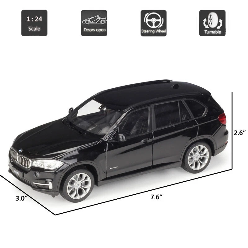1:24 BMW X5 Model Car Toy Cars Diecast Vehicle Toys for Kids Boys Collection Item Type Diecast & Toy Vehicles Scale 1:24 Material Diecast and ABS Colour White, black and grey Dimension About L7.6" x W3.0" x H2.6" (L19.3 x W7.5 x H6.5 cm) Vehicle Type SUV Function *Two doors and engine cover can be open *The front wheels can turn left and right by turning the steering wheel Packing Packed in original colour box, in excellent condition Tips *Great choice of gift for kids, especially for Birthday, Christmas and New Year Gift *Great item for collector, business gift, home decoration, office decoration, display Warning Don't put in mouth/Keep Away from Fire/Not for Children under 3 Years Notice Due to manual measurement, please allow a little error Package include 1 x 1:24 Scale BMW X5 Model Car Payment Delivery details Terms of sales Payment We accept paypal only. Delivery details We ship orders within 24 hours upon receipt of payment. Terms of sales We provide great products and service. If you have any problems with the order,please do contact us before leaving negative feedback and opening case on eBay.