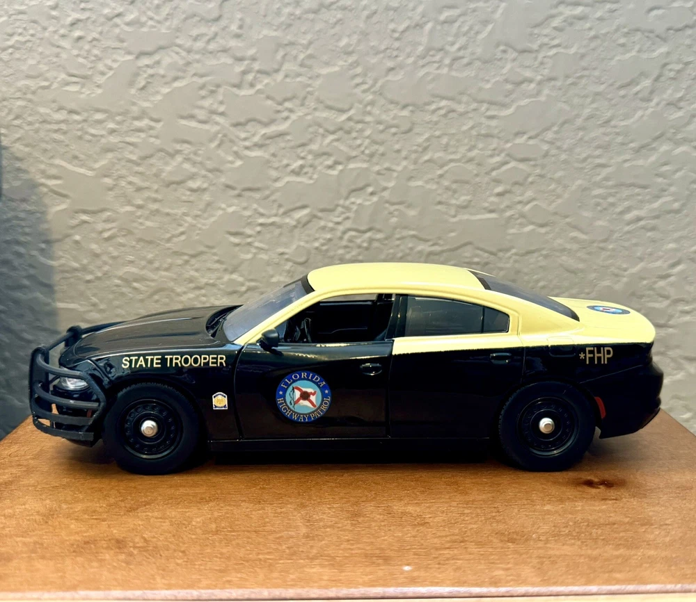 Update: 12/10/24 - Due to high volume of custom request and holidays, turnaround time may be longer than usual. Also to compensate the fees and price of material needed, price has gone back up to $129.99. Holiday sale offers maybe continue during December. IMPORTANT: these models are custom tailor made to per order request and custom build request of 3D parts and accessories added. Please note it could take up to 2 weeks time for turnaround and shipping depending on build request. Must send me a message after purchasing with details of how you want your build. Other year make and models may be available as well. I can do 2011 Dodge Charger, a challenger hellcat and the 2022 Ford Explorer as well. 1/24 - 1:24 scale Motormax brand 2023 Dodge Charger Pursuit custom Painted with FHP Florida Highway patrol decals. All decals are high quality made by PDS with high end laserjet printing, they are installed with two parts of micro solutions then clear coated by brush. This is a very detailed and accurate model input a lot of time and talent into. One of a kind unique handmade custom piece new in box. There are 3D resin printed accessories available for this model sold separately on eBay, the wraparound push bar FHP style and internal dash lights, I can purchase & install wraparound push bar upon request in agreement with a reasonable purchase offer. Priority shipping is an option upon request with appropriate shipping adjustments to your invoice if needed. Can make with or without light bar. Thanks
