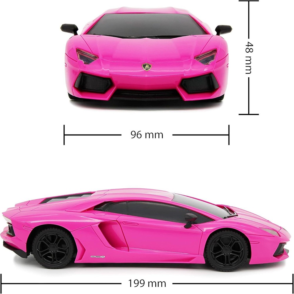 Lamborghini Remote Control RC Car 1:24 Scale Working Lights 2.4Ghz. Great Kids Play Toy (Pink) Item Description 2.4Ghz frequency means that more than 10 can be raced together without interference. This is not possible when buying cars on 27Mhz or 40Mhz which is the normal standard. The perfect individual gift or gift for two, three, four or more than ten! 1:24 scale Lamborghini LP700-4 remote control car (around 20CM+) is ready to use straight out of the box. Just add 5 x AA batteries- 2 for the controller and 3 for the car itself (not included). This is a comprehensive replica model true to the actual vehicle with a full function range including working LED lights, forward, reverse, stop, left and right. Remember the better the batteries the faster the car will go. The Lamborghini LP700-4 remote control car has a working spring suspension system, adjustable front wheel alignment and xenon style head lights. Perfect for night time RC car racing! Race with any other remote control car The controller on this licensed RC car is straightforward to use and can be operated up to a huge 20 Meters away. Show off your driving skills with the Lamborghini LP700-4 toy car indoors or outdoors on smooth surfaces. They can impress their friends with superb cornering ans speeds The model has everything: outstanding detailing, rims, rubber tyres and a great paint finish. This great toy will make the perfect gift for kids ages 6+. Girls and Boys alike will get hours of fun from these RC Cars. Payment safe payment via eBay Shipping Fast and Free Shipping Return 30 Days Return