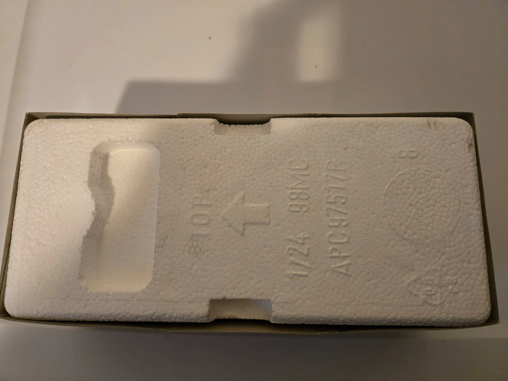 Only ever out of box for pictures. Still in styrofoam, box has sleeve. Sleeve is slightly damaged. Car is mint.
