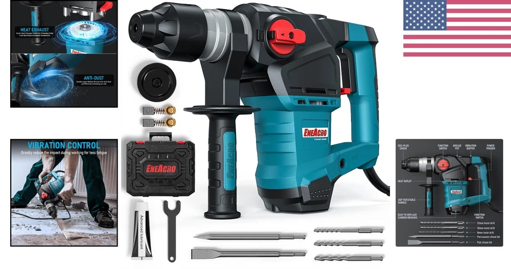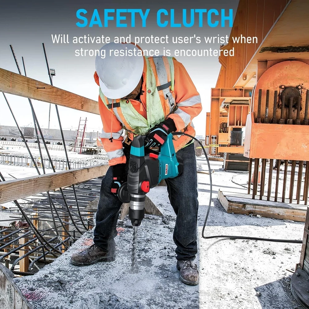 12.5 Amp Heavy Duty Rotary Hammer Drill - 3 Functions, Vibration Control & Case < class="slides"> ‹ › ‹ › ‹ › ‹ › ‹ › ‹ › ‹ › ‹ › ‹ › 12.5 Amp Heavy Duty Rotary Hammer Drill Master your projects with precision and power using our expertly crafted rotary hammer drill, designed for both professionals and dedicated DIY enthusiasts. This robust tool combines advanced features with human-centric designs to elevate your construction experience. Features: <> Powerful Motor: Equipped with a 12.5 Amp industrial motor, the drill delivers an impressive 5.2 feet/lbs (7 joules) of impact energy, perfect for heavy-duty concrete tasks. Humanization Design: Safety clutch protection safeguards your wrist from high torque forces, while the 360° adjustable handle ensures comfort in various work scenarios. Three Functions: Versatility at your fingertips with Drill Only, Hammer Only, and Hammer Drill functionalities, easily switched via a durable dual-function switch. Drilling Capacity: Achieve a maximum drilling diameter of 1-1/4 inch for concrete and 1/2 inch for metal, with an impressive no-load speed of 880 r/min and max impact frequency of 4350 bpm. All-inclusive Specification: Weighing 11.1 lbs with dimensions of 15 "L x 10.23 "W x 4.5 "H, this tool is designed for maneuverability and power. What You Will Get: <> Rotary Hammer Drill (1 unit) SDS-Plus Drill Bits (3 sizes: 8mm, 10mm, 12mm) SDS-Plus 10-inch Chisel (2 units) Auxiliary Handle (1 unit) and Replaceable Carbon Brush (1 set) Lubricant Grease (1 unit) and Dust Proof Cap (1 unit) Carrying Case (1 unit) 24 Defect-Free Service with responsive customer support! Why Choose Our Rotary Hammer Drill? Designed not just for performance but also for comfort and efficiency, our rotary hammer drill stands out as a choice for tackling any heavy-duty project. Enhance your tools collection and trust in the exceptional durability and function of this all-inclusive kit. Achieve results that reflect your hard work and skill—order the 12.5 Amp Heavy Duty Rotary Hammer Drill today and experience the difference! Shipping <> <> Free & Fast Shipping - We offer free shipping to most of the USA with a normal delivery time of 3-7 days. However, due to the current situation, additional delivery time (up to 3 weeks) may be required for some items. Alternative Carriers - We may use alternative carriers (e.g. USPS, FedEx, UPS, etc.) to ensure your package arrives safely and on time. Due to the use of multiple carriers, we are unable to provide a tracking number automatically. Handling Time - Orders are processed and shipped within 1-2 business days of receiving cleared payment. Shipping Restrictions - Shipping to Alaska, Hawaii, Puerto Rico, Guam, and other US territories may incur shipping charges or delivery restrictions. Please contact us before ordering, or your order can be refunded/cancelled. State Restrictions - There may be restrictions based on your state of purchase. For example, certain items may not be shipped to California due to state regulations. Contact for Tracking Updates - If you require tracking updates or have any concerns about the delivery of your order, please feel free to contact us, and we will be happy to assist you. Return <> <> 30-Day Hassle-Free Returns - We want you to be completely satisfied with your purchase. If you are not, you can return the item within 30 days of receiving it for a full refund or exchange. Easy Return Process - To start a return, simply contact us and we will provide you with a prepaid return shipping label and detailed instructions. Restocking Fee - There are no restocking fees for returns. However, the buyer is responsible for return shipping costs if the return is not due to a seller's error. Refund Processing Time - Refunds will be processed within 5 business days of receiving the returned item in its condition. Payment We accept all major credit cards, PayPal, and Apple Pay for your convenience. Your payment information is secure and encrypted to ensure a safe and seamless transaction. Please complete your payment within 3 days of purchase to avoid any delays in shipping. Feedback Your feedback is extremely important to us. We strive to provide the best products and customer service possible. If you are satisfied with your purchase, please take a moment to leave us a positive review. If you have any concerns or issues with your order, please contact us before leaving negative feedback. We are committed to resolving any problems and ensuring your satisfaction. Contact Us If you have any questions or concerns, please feel free to out to our customer support team. You can contact us through the eBay messaging system. We are available Monday to Friday, 9:00 am to 5:00 pm EST, and we will do our best to respond to your inquiry within 24 hours. Buy it now and enjoy a pleasant shopping experience!