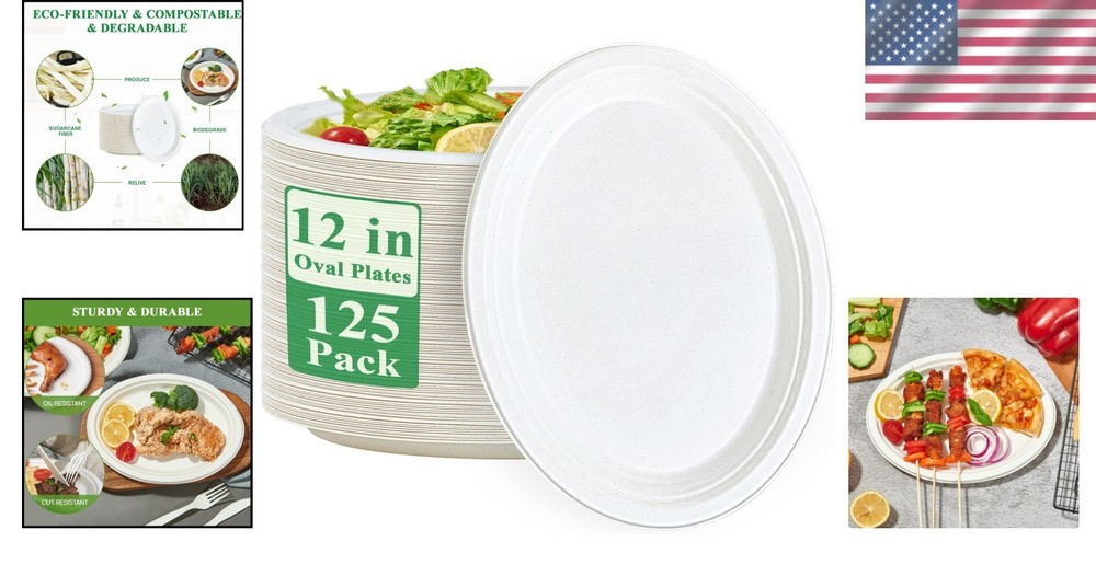 125 Pack 12" Oval Compostable Paper Plates Eco-Friendly ‹ › ‹ › ‹ › ‹ › ‹ › ‹ › ‹ › ‹ › ‹ › 125 Pack 12" Oval Compostable Paper Plates Eco-Friendly Dinnerware for Conscious Living Features: Made from sustainably sourced sugarcane fibers, these oval plates are 100% biodegradable. Compostable for easy disposal, making them an excellent choice for environmentally conscious consumers. Heavy-duty design with no plastic or wax lining; cut-resistant and leak-resistant for superior strength. Microwave and freezer safe, allowing for versatile use in any setting. Measuring 12.6 x 10 inches, these plates are generously sized for a variety of meals. Crafted from bagasse sugarcane fiber, ensuring a sustainable and renewable product offering. Benefits: Good for the environment, promoting sustainable practices. Strong and reliable for both hot and cold dishes. Perfect for hosting events, reducing your carbon footprint. Easy to use, dispose of, and compost, simplifying clean-up. Ideal for a wide range of occasions, from family parties to formal events. Why Choose Our Compostable Paper Plates? Elevate your dining experience while making a positive impact on the planet with our 125 pack of 12" Oval Compostable Paper Plates. Designed to provide the perfect balance of strength and sustainability, these plates are made from renewable sugarcane fibers, ensuring a greener choice for your gatherings. Whether hosting a casual picnic, a stylish wedding, or a corporate lunch, our eco-friendly plates offer unparalleled convenience without compromising on quality. Serve your delicious dishes worry-free, knowing that cleanup is a breeze and your environmental impact is minimized. Make the switch to sustainable dinnerware today — indulge in elegance and Earth-friendly choices with our Compostable Paper Plates! Shipping Free & Fast Shipping - We offer free shipping to most of the USA with a normal delivery time of 3-10 business days. However, due to various situations, additional delivery time (up to 3 weeks) may be required for some items. Alternative Carriers - We may use alternative carriers (e.g. USPS, FedEx, UPS, etc.) to ensure your package arrives safely and on time. Due to the use of multiple carriers, we are unable to provide a tracking number automatically. Handling Time - Orders are processed and shipped within 1-5 business days of receiving cleared payment. Shipping Restrictions - Shipping to Alaska, Hawaii, Puerto Rico, Guam, and other US territories may incur shipping charges or delivery restrictions. Please contact us before ordering, or your order can be refunded/cancelled. State Restrictions - There may be restrictions based on your state of purchase. For example, certain items may not be shipped to California due to state regulations. Contact for Tracking Updates - If you require tracking updates or have any concerns about the delivery of your order, please feel free to contact us, and we will be happy to assist you. Return 30-Day Hassle-Free Returns - We want you to be completely satisfied with your purchase. If you are not, you can return the item within 30 days of receiving it for a full refund or exchange. Easy Return Process - To start a return, simply contact us and we will provide you with a prepaid return shipping label and detailed instructions. Restocking Fee - There are no restocking fees for returns. However, the buyer is responsible for return shipping costs if the return is not due to a seller's error. Refund Processing Time - Refunds will be processed within 5 business days of receiving the returned item in its condition. Payment We accept all major credit cards, PayPal, and Apple Pay for your convenience. Your payment information is secure and encrypted to ensure a safe and seamless transaction. Please complete your payment within 3 days of purchase to avoid any delays in shipping. Feedback Your feedback is extremely important to us. We strive to provide the best products and customer service possible. If you are satisfied with your purchase, please take a moment to leave us a positive review. If you have any concerns or issues with your order, please contact us before leaving negative feedback. We are committed to resolving any problems and ensuring your satisfaction. Contact Us If you have any questions or concerns, please feel free to out to our customer support team. You can contact us through the eBay messaging system. We are available Monday to Friday, 9:00 am to 5:00 pm EST, and we will do our best to respond to your inquiry within 24 hours. Buy it now and enjoy a pleasant shopping experience! Unit Quantity: 125 Material: Paper,Bagasse,Sugarcane Fiber Features: Compostable,BPA Free,Microwave Safe,Eco-Friendly,Biodegradable,Heavy-Duty,Cut-Resistant,Leak-Resistant Type: Plates Occasion: All Occasions Number of Items: 125 Color: White Theme: Eco-friendly Dining Pattern: Solid Style: Modern Origin: California