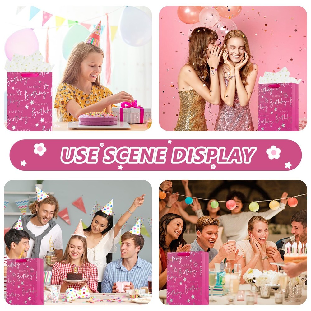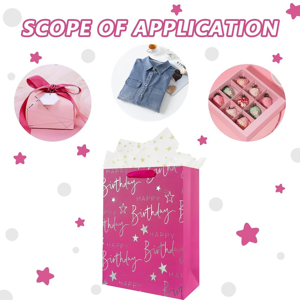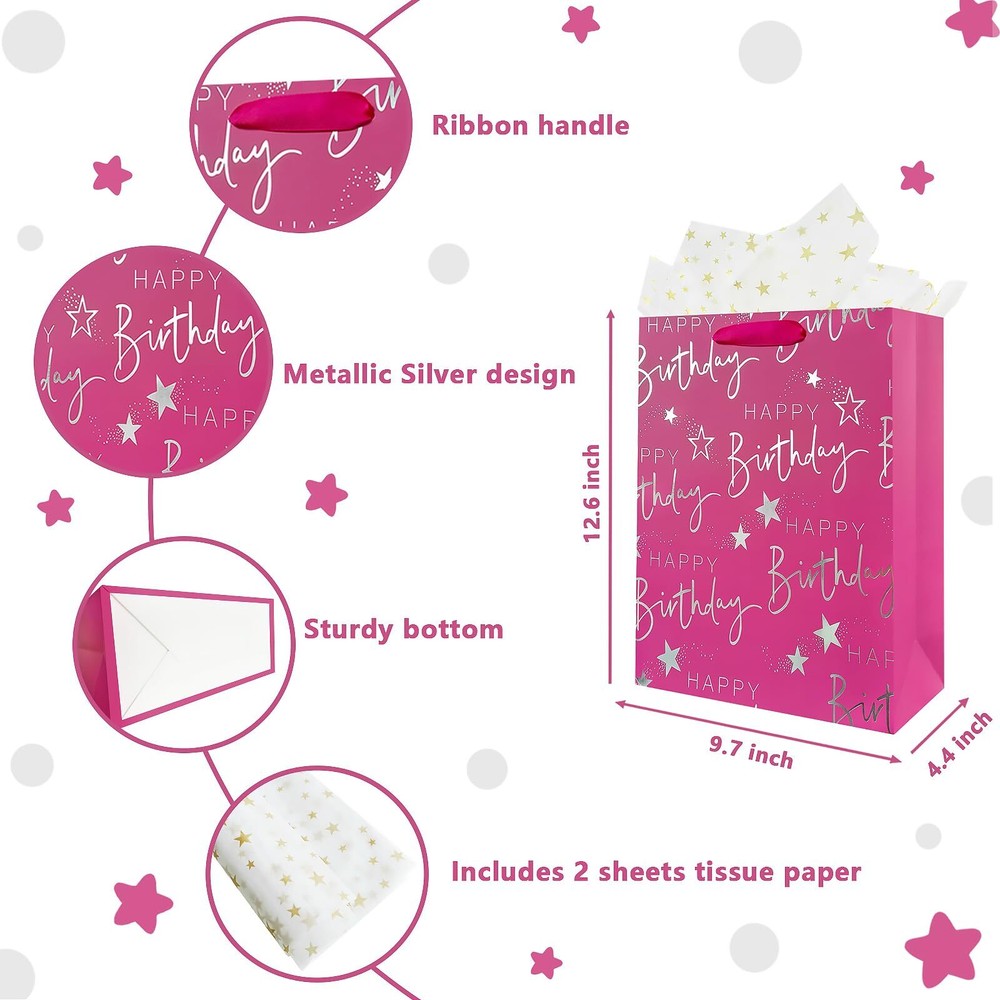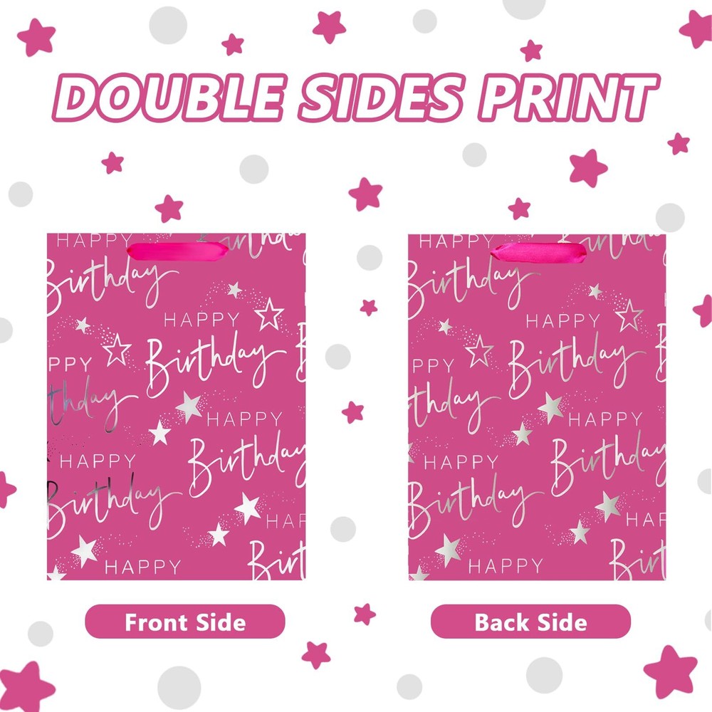 Welcome to Our Store! Quality Products, Satisfaction is what we guarantee. 12.6" Medium Happy Birthday Gift Bag with Handles for Women, Paper Gift Bags for Her Girls Kids Baby Pink Paper Bags with Tissue Paper Product Images Product Details Key Features 【Pink Birthday Gift Bags】-Medium pink happy birthday gift bags with bright and text design, which are suit for birthday party. 【Come with 2 Sheets Tissue Paper】-The gold starry tissue paper appeal to any theme, which will adds significant value to your gifts. 【Sturdy Gift Bags with Handles】-Women's birthday gift bags are made of thick and sturdy material that holds up well to weight. 【Reusable Girl Birthday Gift Bags】-Pink birthday gift bags are made of sturdy paper, with recyclable and foldable, which are great for baby gift bags for baby shower girls. 【Versatile Use】-pink happy birthday gift bag is perfect for kids birthday party bag, girls and women birthday gift bag. Beautifully wrapped gift bags add surprise and joy to the recipient. We appreciate your business! Contact Us 📧 If you have any questions, feel free to reach out via the eBay messaging system. We respond to all inquiries within 24 hours. Payment Information 💳 We accept PayPal, credit cards, and other payment methods supported by eBay. Please ensure your payment information is current to avoid delays. Shipping Information We ship to the address on your eBay account. Please confirm your address before completing the purchase. Delivery times are typically 3-5 business days. If there are delays, please allow an extra 1-2 business days due to postal service issues or technical problems. We use trusted shipping services like UPS, FedEx, and USPS. Shipping is available to the contiguous 48 states only. We do not ship to Alaska, Hawaii, US territories, APO/FPO addresses, or PO Boxes. Local pickups are not available. For any issues with delivery, please contact us promptly. Feedback 🌟 We value your feedback and strive to earn your trust. If you're not satisfied with your purchase, please contact us and we'll work to resolve the issue. Return Policy - We offer a 30-day money-back guarantee. - If the item is defective or you are not satisfied, contact us for a replacement or refund. - All returns must be sent to the address provided upon contacting us.