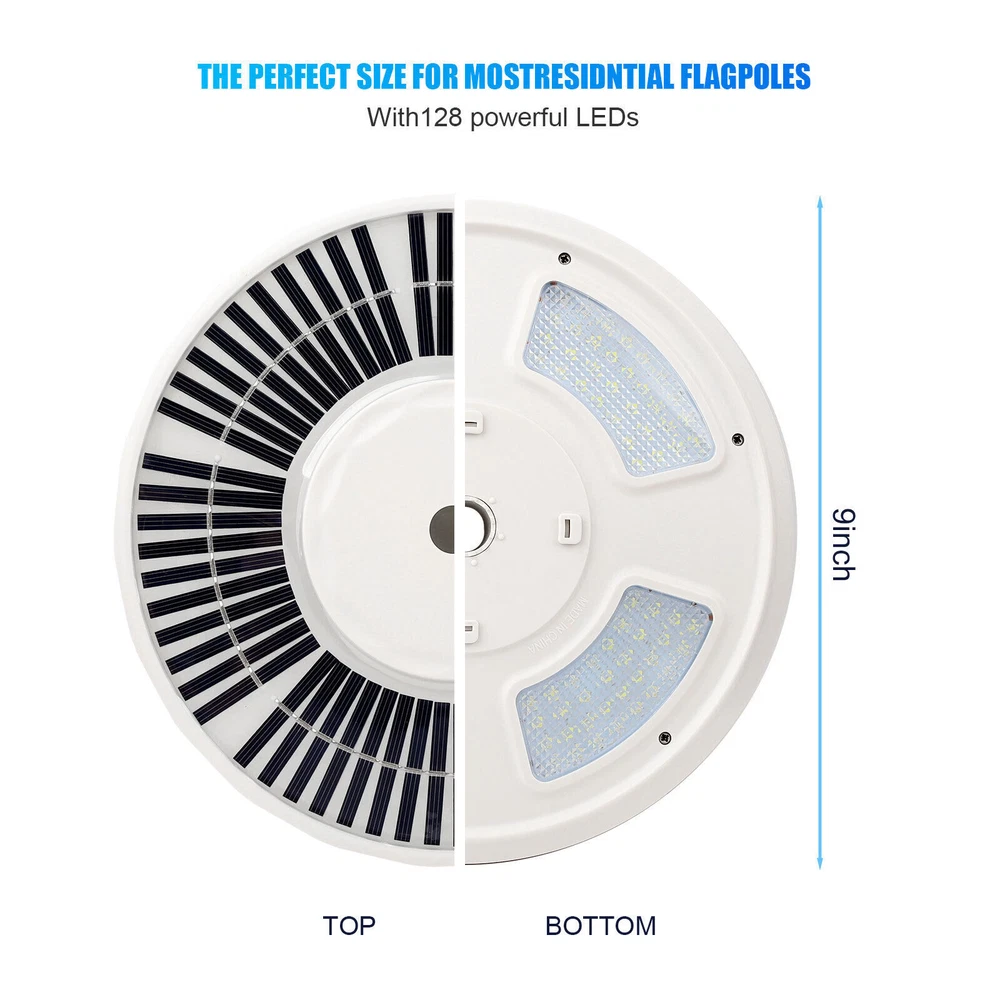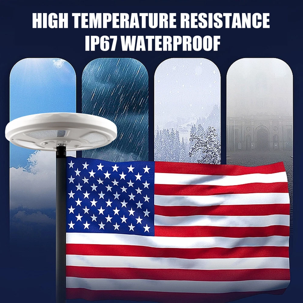 Product Description Item Description Features: ✦128 LED lights up the latest flagpole lights. The solar flagpole lights are made of 128 upgraded LED lamp beads. The brightness is 640 lumens, which is 3.6 times brighter than ordinary 48 LEDS flag lights. With solar flag lights, your national flag will become the brightest beacon in the night sky. ✦Upgrade solar panels to achieve faster solar conversion. 128LED flagpole lights adopt the latest dispersion technology, increasing the number of solar panels from 12 to 60. Therefore, this 2500 mAh solar flagpole light can absorb solar energy faster and can work continuously for up to 12 hours at night. ✦Auto on/off and 2 brightness lighting modes, equipped with cutting-edge sensors, can detect the correct time to automatically activate the lighting when it is dark. Please make sure that the flagpole light switch is in the "on" state before installation. Press the switch button once, face down or cover the solar panel, if it is lit, it is “ON”; if it is not lit, you need to press the button again to set it to “ON”. In addition, the flag light has two brightness lighting modes. The high-brightness flag will be more dazzling, and the low-brightness can work longer. ✦Suitable for most flagpoles of 15-25 feet, easy and quick to install, 128 LEDS solar flag light can be used with flagpoles buried in the ground of 15-25 feet, suitable for flagpoles in 0.6 inch holes, easy to install without any special tools. In addition, this lamp can be hung anywhere, used for camping, roadside, courtyard, night market. Specifications: - Color: White - Material: ABS - Light-emitting chip: 128 LED - Dimensions: 9 x 9 x 1.2in - Solar panels: 5V/560mAh - Power supply: 5V/560mAh - Battery: 18650 lithium battery - Battery capacity:2500mAH - Battery QTY:1 Battery - Charging time:8-10 hours - Working hours: 6-12 hours - Waterproof: IP67 - LED: 128LED (2835 patch) Package Included: 1 x Solar Flagpole Light 2* Hanger Accessories Tips: 1. Please use a 15-20 foot flagpole with a 0.5"-0.6" pole on the top. 2. Please tear off the protective film on the solar panel for the first time. 3. Make sure that the light switch is in the ON position before installation. 4. If you want to get the best performance of 128 LED solar lights, please ensure 8 hours or more sunlight, about 10 hours of lighting, 5. Please note that this list only applies to solar flag lights. Does not include balls, bolts, decorations, flags or flagpoles. The props in the product pictures are only for demonstration and application purposes. 6. The maximum brightness of the flagpole is 640 lumens. If you want your flagpole to light up longer at night, please select "I" level. If you want to get 640 lumens of brightness at night, please choose the "II" level. 2X Shaft Adapter Sleeve 335 For Taylormade Qi10,Stealth,SIM,M6,M5,M4 Driver&Wood 9.99 USD Free shipping 10 AWG Solar Panel Extension Cable PV Wire Solar Connectors Pair Black Red 6mm² 16.59 USD Free shipping Bidet Fresh Water Spray Kit with Dual Nozzle Non Electric Toilet Seat Attachment 20.19 USD Free shipping Trucker Bluetooth 5.2 Wireless Headset With Noise Cancelling Mic For Phones PC 25.99 USD 0.59 USD Electric Vacuum Magnetic Suction Car Phone Mount 360° Rotation Phone Holder 21.99 USD Free shipping 6 pcs Toothbrush Replacement heads COMPATIBLE WITH & FOR SONIC E-SERIES 14.99 USD 0.59 USD