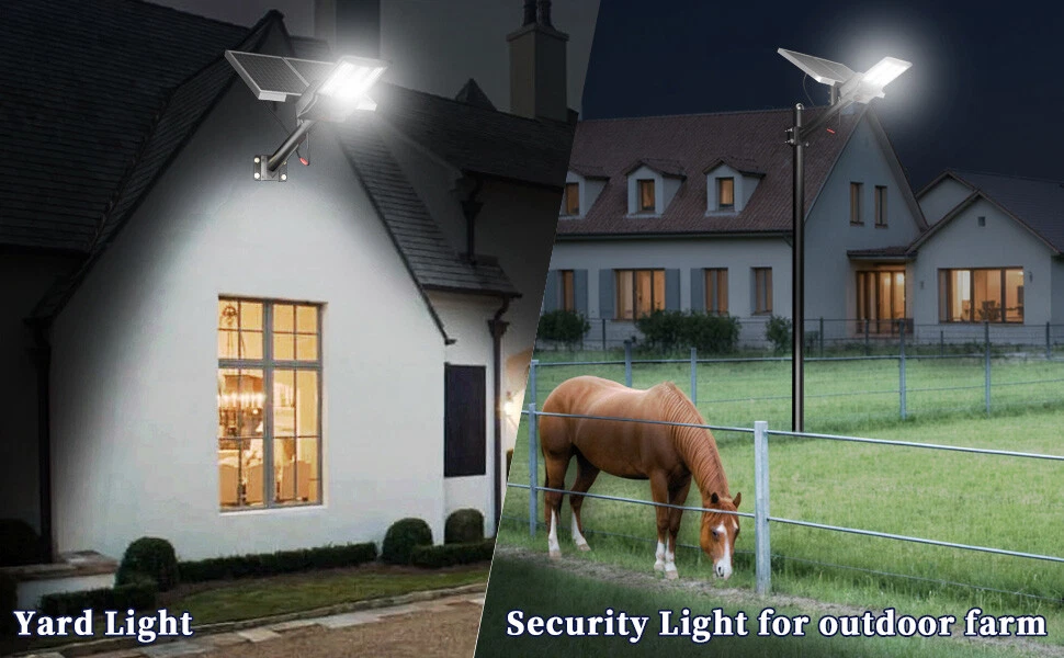 Gefolly SL-12800W solar security light is built-in 1844pcs 5054 ultra bright LED lamp beads and 140000mAh battery (lifetime up to 95,000 hours). Provides a 6500K, IP67 waterproof rating, and works normally even in bad weather all year round. Solar powered, no electricity bill, auto turns on at dusk and charging during the day, Continuous lighting up to 30 hours (when fully charged). Best for commercial and home lighting. Note: The remote controls that come with the light are available in white and black. The white and black remote controls are shipped randomly. 12800W Commercial Solar Street Lights Outdoor Dusk to Dawn For basketball court 【Solar Powered & 0 Electricity Bill】 — Gefolly SL-12800W solar security light is built-in 1844pcs 5054 ultra bright LED lamp beads and 140000mAh battery (lifetime up to 95,000 hours). Provides a 6500K, IP67 waterproof rating, and works normally even in bad weather all year round. Solar powered, no electricity bill, auto turns on at dusk and charging during the day, Continuous lighting up to 30 hours (when fully charged). Best for commercial and home lighting. Note: The remote controls that come with the light are available in white and black. The white and black remote controls are shipped randomly. 【140AH Large Capacity Battery & Power Capacity Indicator Light】 The solar street light has a built-in 140000mAh lithium battery, which is more stable and durable. Equipped with 2 solar panels , compared with ordinary solar lights, our lights can absorb twice the solar energy during the day, convert it into double electricity and store it, and output it in the form of light energy at night. With 4 power capacity indicator light, more intuitively understand the remaining power of the lamp during use. 【Super Bright 5054 Type Led Beads】 Designed with 1844pcs first-class super bright 5054 type LED beads, 1 of our Gefolly beads is as bright as 20 ordinary beads. The lighting area is up to 9600 square feet, reducing lighting blind spots. Escort for the safety of you and your family. The first choice for night lighting. 【Intelligent Control & Easy Installation】 —The solar flood security light comes with a remote control, convenient for long-distance use. 2 lighting modes (constant light mode, timer setting mode) and 10%-100% brightness adjustable. 3 timing groups: 3H/5H/8H(No radar induction) . Comes with a set of wall and pole mount accessories that require no wiring for easy outdoor installation. Great for streets and roads, parking lots, basketball courts, garages, gardens, streets, courtyards, etc. 【 3-Year Policy】 — We promise a 120-day money-back and a 3-years product maintain. We're devoted to providing a satisfying purchase experience for our customers. For any questions about the solar security flood lights, pleas contact our customer service team. Brand Gefolly Color Black Material Aluminum Style Industrial Light fixture form Wall Room Type / Product Dimensions 21.65"L x 13.78"W x 2.5"H Specific Uses For Product Garden Indoor/Outdoor Usage Outdoor Power Source Solar Powered Installation Type Surface Mount Special Feature Waterproof Control Method Remote Light Source Type LED Finish Type Powder Coated Shade Material Plastic Number of Light Sources 1844LED Light Color cool white Shape Rectangular Included Components 140000mAh battery, 2 solar panels, remote control, wall and pole mount accessories, set of accessories Warranty Type Extended Lighting Method LED Number of Items 1 Wattage 6.5E+3 Bulb Base E26 Controller Type Remote Control Switch Type Remote Control Unit Count 1.0 Count Water Resistance Level Waterproof Brightness 99999999999900 lumen Efficiency High Mounting Type Wall Mount Shade Color Black Fixture Type Non Removable Assembly Required Yes Manufacturer Gefolly Recommended Uses For Product outdoor lighting for commercial and residential areas, parking lots, sports facilities, garages, gardens, and pathways Model Name Solar Light Part Number SL-12800 Item Weight 21 pounds Item model number SL-12800W Batteries 8 Lithium Polymer batteries required. (included) Finish types Powder Coated Special Features Waterproof Package content 1 x Solar Street Light (Mounting Pole is INCLUDED) 1 x Remote Control 1×Nut Kit 1 x Manual 1×Packing Box 2xMonocrystalline silicon solar panel About us Delivery details Returns Payment Contact us About us Why Choose Gefolly Solar Security Light? Gefolly is a brand devoted to all kinds of lamp produce and design. We have been deeply engaged in lighting products for many years, and we have our own design and development team and production and manufacturing team. We promise to provide excellent product quality and efficient after-sales service and look forward to your choice. Delivery details USWarehouse Fast&Convenient Delivery Shipping available time: Mon. - Fri. exclude holidays The orders will be handled in 24 hours after payment got. Returns 1.We strive to ensure 100% satisfaction for each and every one of our customers. we offer a 30-day 100% money-back guarantee on all eBay orders. 2. All of our products are one hundred percent brand new. 3.Please inspect your order upon arrival for missing/incorrect items. Please messages us to notify us of any missing/incorrect item. 4. Item may be return within the return period. It must be returned in its original and unused condition. Goods must also be in its original box and packing. Do not dispose of the box or any packaging materials until you are satisfied with the product. Payment 1. Paypal Accept.You can use any payment method supported by eBay. 2. Payment should be sent within 4 (FOUR) days auction closing. Or unpaid dispute will be filed for closing auction. Contact us ★★★ USA Warehouse! Fast shipping! 1.Office Time: 9:30 - 18:30, Monday - Friday(UTC+8) 2.Please contact us with eBay Message. 3.We will respond you within 24 hours on business day. ★★★Your satisfaction is our pursuit. We Strive For Positive Feedback & 5stars ☆☆☆