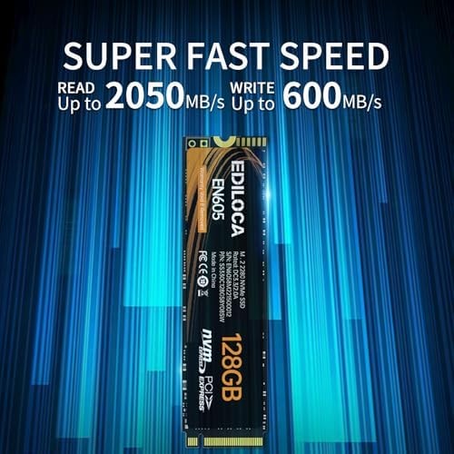 About this item 【Top Performance】With the accelerated performance through NVMe technology, EDILOCA EN605 M.2 SSD can provide you with shorter loading time and faster data transfer. EN605 NVMe SSD can reduce OS and game/software latency, you can get stable and smooth gaming / office experience. 【High-Speed Transfer】PCIe Gen3 x4 high-speed interface, sequential read or write speed up to 2050/600 MB/s. Compliant with NVMe 1.3 protocol standard, it has high performance, low latency and low power consumption features. 【Stable & Reliable】Built-in LDPC error correction decoding effectively ensures the correctness and reliability of data transmission and access. 【Widely Compatible】Lightweight design with M.2 2280 interface specification, it can be used by desktop or notebook computers that support M.2 PCIe interface. Perfectly compatible with Windows 10/8/7 and later.