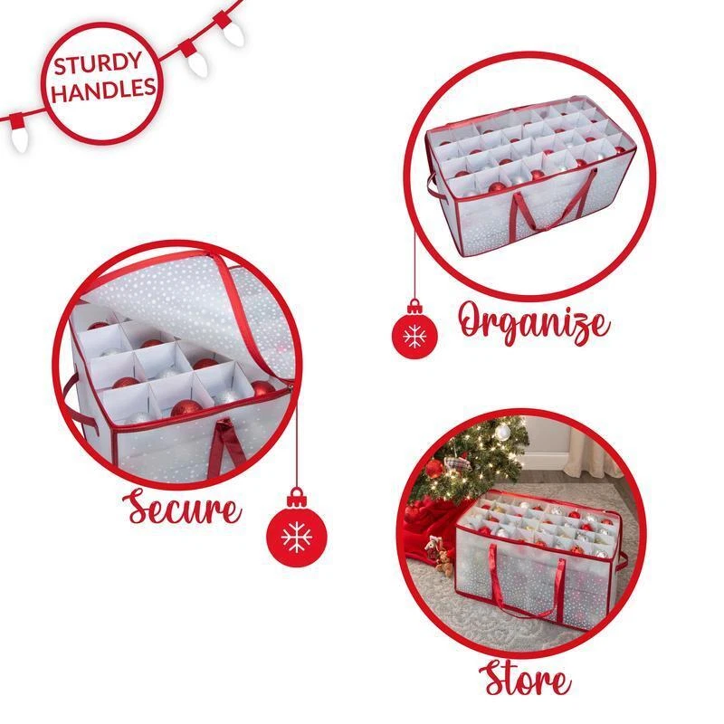 128-Slot Ornament Storage Tote with Dividers & Carry Handles