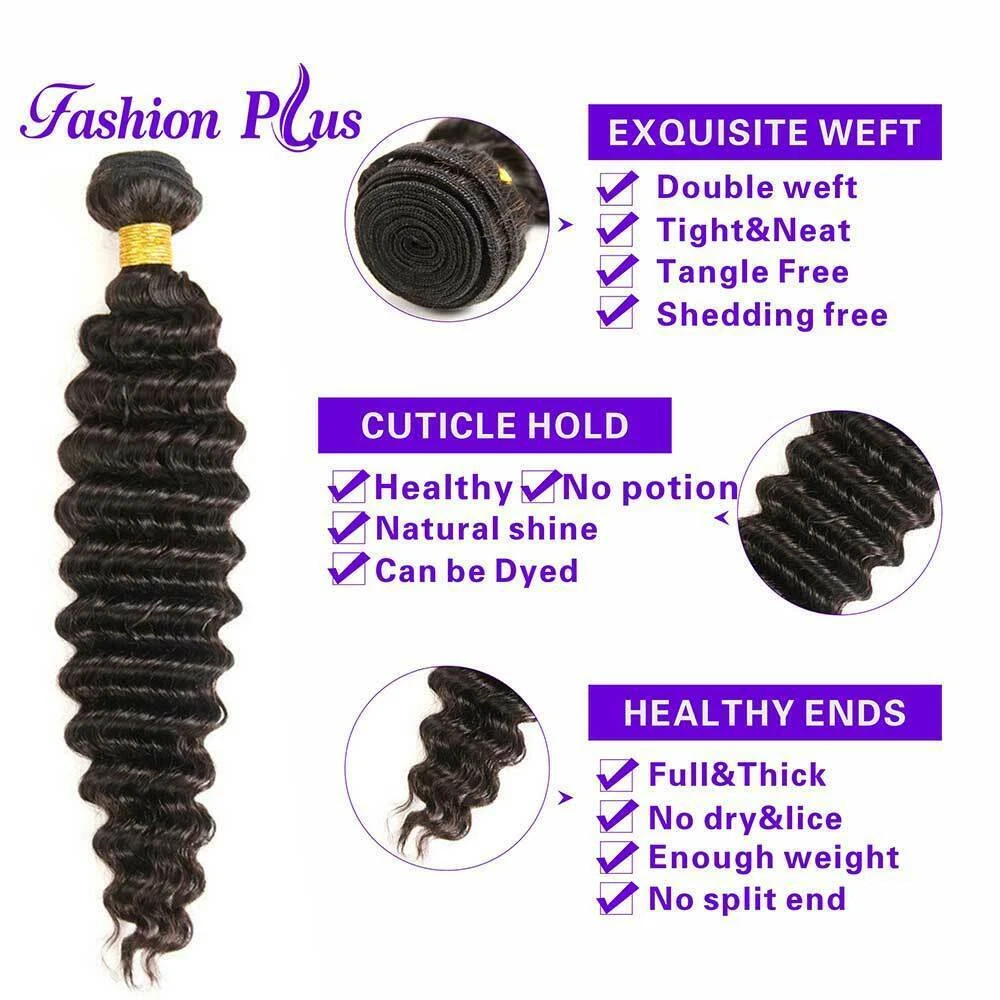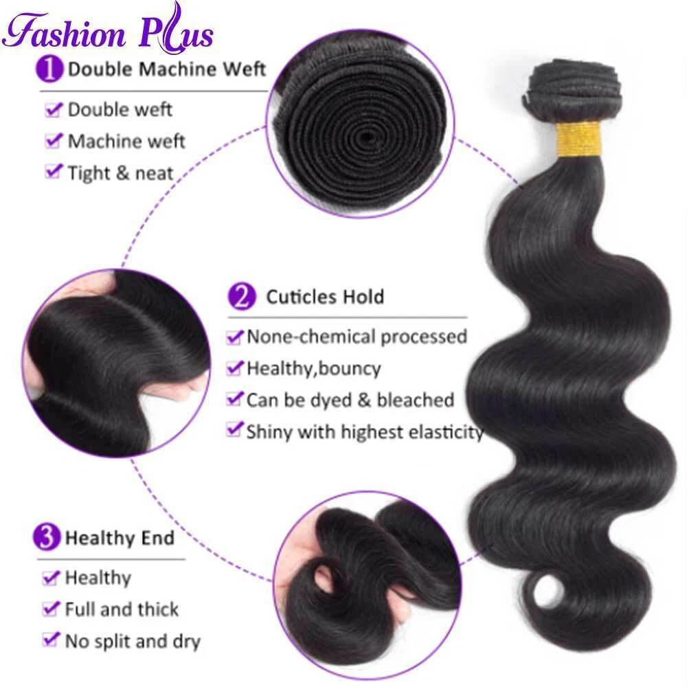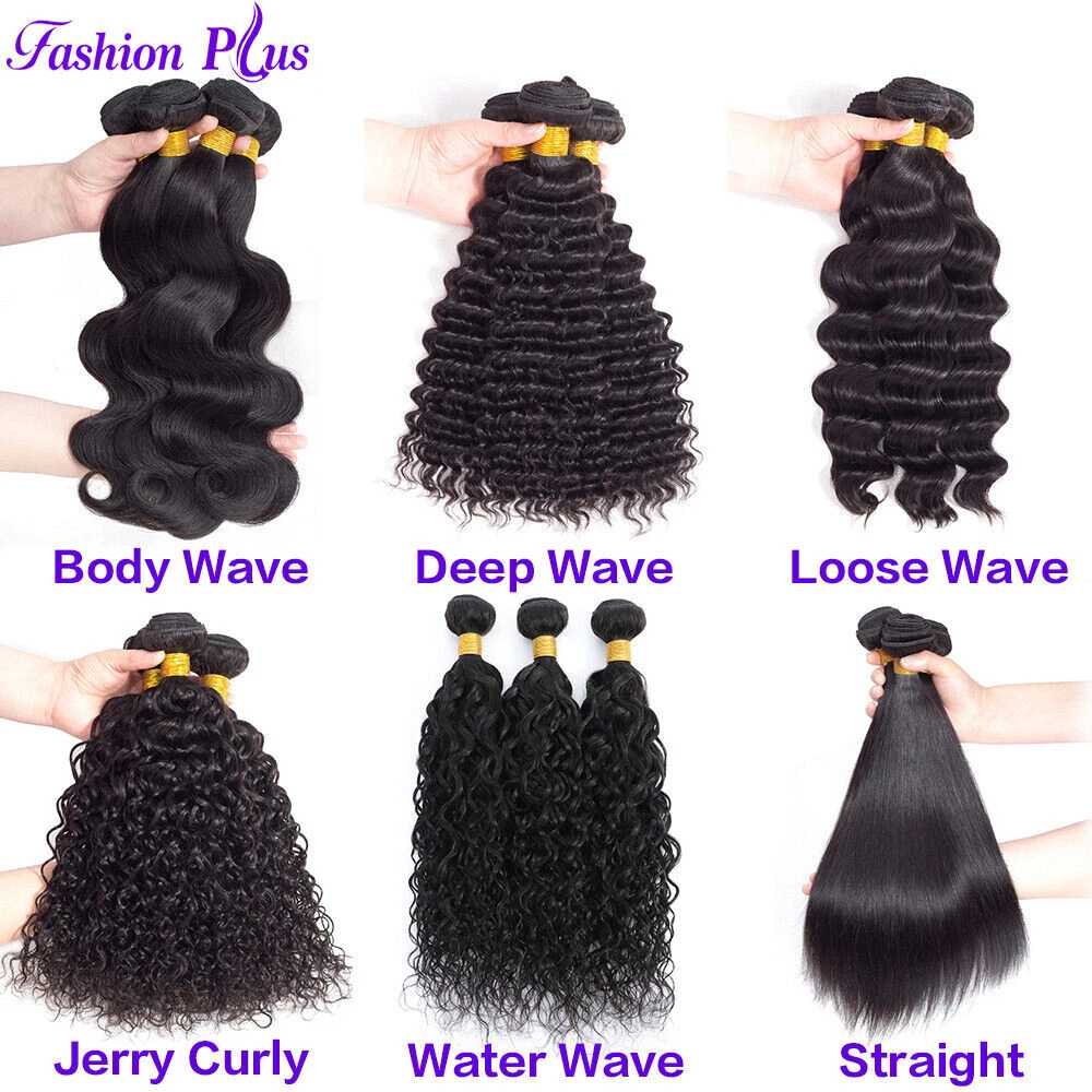 12A Body Wave Human Hair Bundles Water Wave Bundles Weft Straight Virgin Hair Brand Name: Fashion Plus Hair Grade: 12A Hair Color: Natural Black Hair Bundles Weight: 100g per bundle, 3Bundles=300g Hair Length: 8in 10in 12in 14in 16in 18in 20in 22in 24in 26in Texture: Body Wave, Loose wave, Deep wave, Natural wave, Jerry Curly, Straight Wavy available Hair Material: Brazilian 100% Real Human Hair Hair Quality: Dchine ouble Ma W eft,Very Soft and Silky,Tight and Neat,No Shedding,No Tangle,No Chemical Treatment. Processing Time: We Promise Will Handle The Order ASAP After Your Payment be verified Within 24 Hours, Except Sunday (GMT+8 Beijing, China) Delivery Time: It usually takes 2 -5 working days to be delivered by USPS Free Shipping Refund Policy: 30 days no reason to return,1 year after-sales services Q: Why are my hair extensions getting tangled? A: Your hair extension tangle due to dryness, oil&dirt built-up, salt water, chlorine and not combing(wide tooth comb) out hair daily. Make sure to wash&Condition your hair at least once a week,twice a week is better. Use olive oil to moisten it smoothly or consult your stylist for more help. Q: Can I dye the hair? What should I can pay attention to? A: Treat the hair as if it is your own. Use a flat iron/ straightener or tongs, even when fitted, but as with your own hair, never use hot tools too often as you could dry the hair and it will not last as long. Q: How to tell human hair with synthetic hair? A: human hair r has natural protein . It is easy to tell by burning and smell: human hair will be ash , which will go away after pinching. human hair will smell foul . When burning , the human ha i will show white smoke. While synthetic hair will be a sticky ball after burning and will show black smoke . Moreover, human hair may have very few gray hair and split end. It is normal and not a quality problem. Q. Can I dye /color the hair? A: Yes. The hair can be colored. As a general rule it is easier to darken the hair than to lighten the hair. We recommend to dye darker , not lighter since the hair extension has been processed and colored, it is difficulty to fade the original color. Improper dying will ruin the hair. We highly recommend having your hairdresser dye the extensions as you will get the results you want, coloring them yourself always poses a high risk of not coming out the shade you want. If you can't get to a salon, always use a good quality hair dye and test a small sample first. Virgin hair is not processed chemically and it keeps cuticle intact. you can dye it any color, either darker or lighter. Q. Can I wash & blow-dry the hair extensions? A: You can wash them as you would your own. Shampoo and conditioner. We also recommend using a hair treatment on them every few weeks, because the hair is not attached to your scalp, it is not getting the oils it should be. Using a treatment/hair mask will help keep them looking healthier and shiny for longer! You will find that you don't need to wash your extensions too much, about every 3 weeks. The extensions can be blow-dryed on low setting, but it is not recommended to do it too often. It is best to let your hair extensions dry naturally after washing them. please comb from bottom to top.