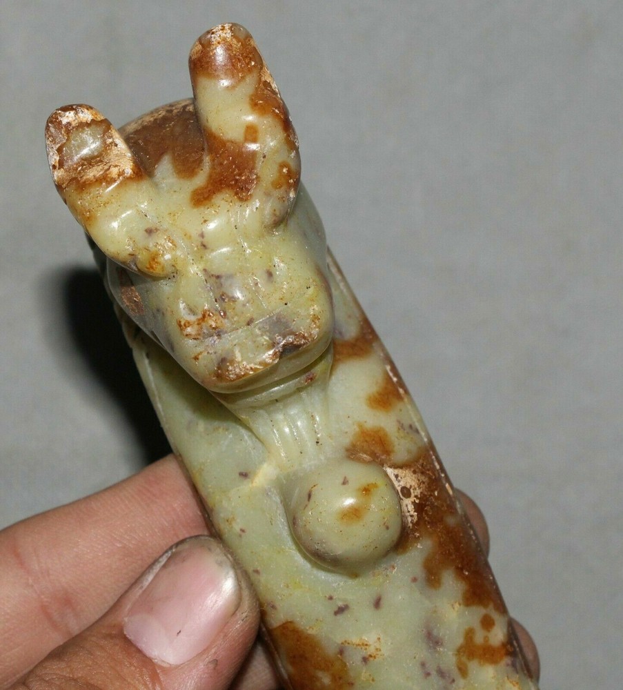 $ 31.164CM Hongshan Culture Jade Fengshui Beast Yu Cong Zong Amulet