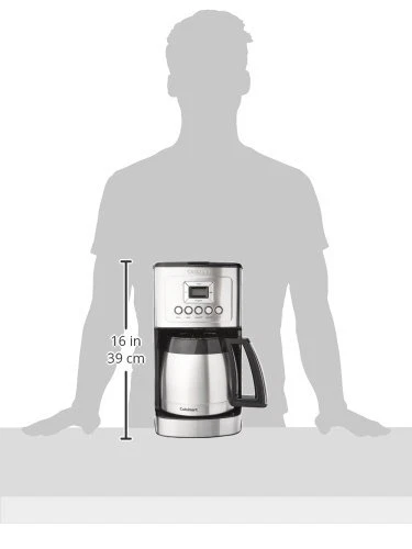 Color Silver Product Dimensions 7.75"D x 9"W x 14.25"H Special Feature Programmable Coffee Maker Type Drip Coffee Machine Capacity 12 Cups Material Stainless Steel Item Weight 8.5 Pounds Wattage 1100 watts About this item PROGRAMMABLE COFFEE MACHINE: Fully automatic Cuisinart 12-Cup* Coffee Maker with 24-hour programmability, self-clean, 1-4 cup setting, optional ready alert tone, and Brew Pause convenience. PIPING HOT COFFEE: Hotter coffee with expert coffeemaking technology to ensure hotter coffee temperature without sacrificing flavor or quality. BREW STRENGTH CONTROL: This Cuisinart coffee machine tailors the strength of your brew with Brew Strength Control for regular or bold settings. Savor the rich flavors with the included gold-tone and charcoal water filters. 12-CUP* CAPACITY: *Cup equals approx. 5 oz. (varies by brewing technique). CONVENIENT DESIGN: This Cuisinart coffee maker features a backlit LCD that’s easy to read, a ready tone that can be turned on or off, and an indicator light that signals when it’s time to decalcify.
