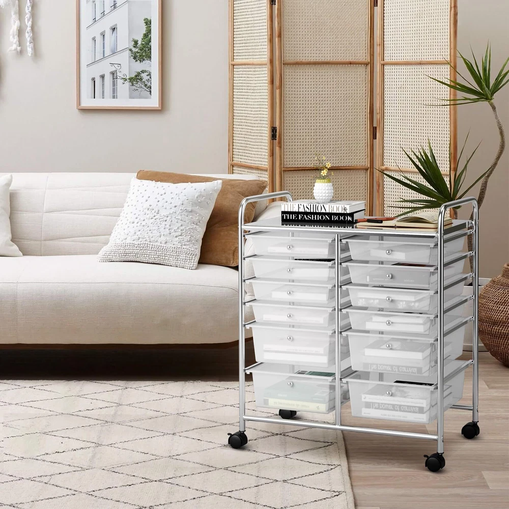 Home12-Drawer Rolling Storage Cart with Large Capacity and Wheels