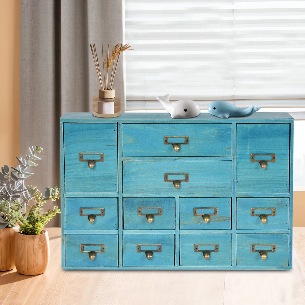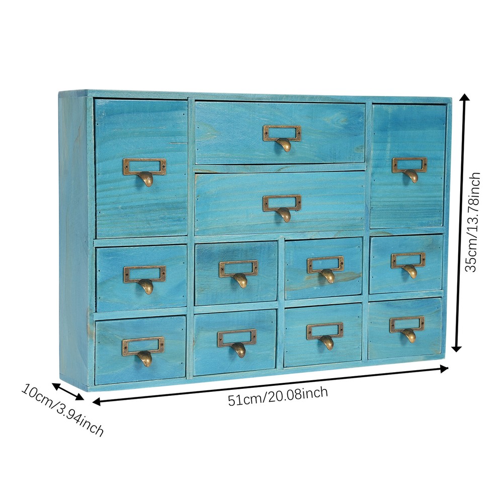 Specification Color: Blue Shape: Rectangular Mount Type: Tabletop Assembly Required: No Number of Drawers: 12 Material: Plywood, Pine Wood, Zinc Alloy Process: Spray Painting, Aging Indoor/Outdoor Usage: Indoor Load Capacity: 10kg/22.05lbs Package Size: 54*38*14cm/21.26*14.96*5.51in Product Size: 51*10*35cm/20.08*3.94*13.78in Gross Weight: 5kg/11.02lbs Net Weight: 4.5kg/9.92lbs Package Included 1* Desktop Drawer Organizer 12 Drawers Wooden Desktop Organizer Home Storage Case Cosmetic Dresser Box new Description~~ Description Do you feel annoyed by too many cluttered and unorganized items on your desktop? Our desktop drawer organizer can help you solve this problem. This product is made of high-quality plywood, which is moisture-proof, sturdy, and durable. The 12 drawers are convenient for you to organize different daily items. Our product can effectively help you reduce the pressure on your countertop, which is an ideal choice for you. Key Features Selected Material: The premium plywood and pine wood with spraying painting and aging processes make this product durable, environmentally friendly, and rust-resistant , ensuring a long service life. Elegant Appearance: The classic look and natural wood grain can serve to decorate a room, and it can easily be incorporated into any décor to add a splash of color to a space. Save Space: Its compact size (20.08*3.94*13.78 inches) and 3-tier design make full use of tabletop and vertical space, and keep your room neat and clean. Categorized Storage: The product has 12 independent drawers and comes in three sizes, allowing you to store your items in different drawers according to their size and to be categorized and organized. In addition, the top can also be used to hold items, allowing you to maximize the use of your space. Ready to Go: You can use the product directly after receiving it without installation, which saves you a lot of time. Easy to Clean: Thanks to its simple structure and smooth surface, you can wipe the dirt from it with a soft cloth, which is convenient. Ideal Gift: Thanks to its practicality and beauty, you can give it to your friends as a holiday or housewarming gift! Buy with Confidence: We stand behind all our guests and look forward to assisting you with your purchase. It is our pleasure to answer your confusion and questions. The end of the story between us is not "we sell and you buy". Details Practical Handles: The zinc alloy handles are convenient for you to pull the drawer easily to get the needed items. Label Slot: It is convenient for you to label the outside of the different drawers so you can sort and search. Smooth Edge: The smooth edges not only add to the aesthetics of the product but also improve the safety of use. Application Our products are suitable for use in the home and office for storing documents, office supplies, books, jewelry, remote controls, keys, stationery, diaries and other small items, medicines, jewelry, crafts, cosmetics, oils, office supplies, tea bags, coffee gear, essential oils, lipsticks, children's toys, blocks, pencils, erasers, notebooks, perfumes, nail polish, brushes, earphones, chargers, handicrafts, spare parts, needle and thread supplies, snacks, push pins, mail/receipts, tapes, etc, as well as for organizing cosmetics and other personal items. Specification Color: Blue Shape: Rectangular Mount Type: Tabletop Assembly Required: No Number of Drawers : 12 Material: Plywood, Pine Wood, Zinc Alloy Process: Spray Painting, Aging Indoor/Outdoor Usage: Indoor Load Capacity: 10kg/22.05lbs Package Size: 54*38*14cm/21.26*14.96*5.51in Product Size: 51*10*35cm/20.08*3.94*13.78in Gross Weight: 5kg/11.02lbs Net Weight: 4.5kg/9.92lbs Package Included 1* Desktop Drawer Organizer Notes Please note that other objects are not included except the drawer organizer. Please check the size carefully before ordering. Please allow the slight color difference caused by the shooting light and the 1-3 cm error due to manual measurement, and make sure you do not mind before ordering. Payment Delivery details Terms of sales About us Contact us Payment We accept ebay payment 。 Fees such as import duties, taxes are not included in the item price or shipping costs. These charges are the buyer's responsibility. Delivery details Shipping: 2-9 working days to: USA Terms of sales We maintain high standards of excellence and strive for hundred percent customer satisfaction. Feedback is very important to us. We hope that you contact us immediately before you give neutral or negative feedback, so that we can address your concerns. It is impossible to address issues if we do not know about them! About us Your satis faction is our ultimate goal. We work hard to earn your trust and future business. Our certified technicians have tested each item before shipping. The unit comes with 1 year limited warranty on all manufacturing defects. a) If you receive a defective item, you may return it or ask for a discount. Please contact us within 14 days after you receive the package. b) What you returned must be intact and in its original packaging as re? u. Customer is responsible for shipping costs of the returned item. c) We will cover the cost of shipping back t with the shipping rate indicated in the registration page. We will send you a new unit or refund the full payment you paid. Thank you. Contact us Business Hour Business Hour: Monday To Friday: 8:30 AM to 5:00 PM (Beijing China time) Due to time zones, our reply to your questions may not be immediately. But within above working time, we will reply your email within 24 hours. If it's non-workdays, please kindly be patient and wait till Monday. Please contact us with ebay message. Please feel free to contact us if you have any questions. Monday To Friday: 8:30 AM to 5:00 PM (Beijing China time) Due to time zones, our reply to your questions may not be immediately. But within above working time, we will reply your email within 24 hours. If it's non-workdays, please kindly 