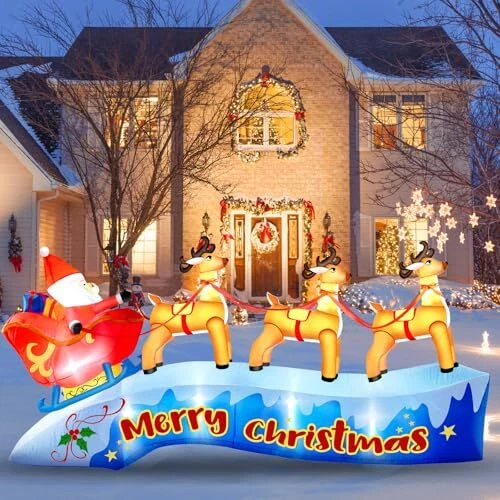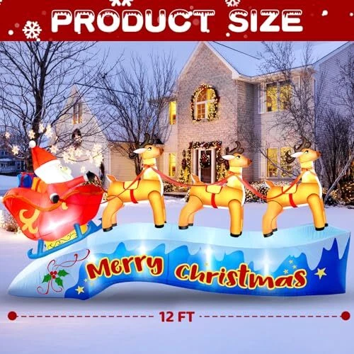 30 Days Return Policy Fast Delivery Trusted seller 12FT Long Christmas Inflatable Outdoor Decorations, Santa Claus on Sleigh with Three Reindeers, Christmas Blow Up Built in LED Lights Inflatables Outdoor Christmas Decorations for Outdoor, Lawn Product Description 【????? ??? ???????? ??????????】: Add holiday cheer to your outdoor decor with this 12FT long christmas inflatable santa sleigh - perfect for all your Christmas celebrations. Create a cheerful holiday display with an inflatable Santa sitting in a sleigh pulled by three lovely reindeer. 【???????-?????????】: Made of high strength polyester materials, this christmas inflatable sleigh will withstand the protection. The waterproof surface ensures that your inflatable santa and reindeer stays protected from rain or snow. With a tear-resistant surface, your santa reindeer outdoor decoration won't get damaged in windy conditions. Fine stitching adds durability and ensures that your inflatable Santa can be stored for a long time. 【??? ????? & ??????】:Our santa reindeer inflatable built-in LED lights and a powerful blower, bright LED lights make christmas decorations inflatables shine at night, creating a special demonstrate for everyone to enjoy. With the included power supply and blower, this inflatable comes to life in seconds, transforming your yard into a festive place. Spread holiday cheer with a charming santa with sleigh and reindeer, perfect for adding a festive touch to your yard. 【???? ?? ?????】: Easy to set up and inflate, this christmas inflatables outdoor is sure to impress your neighbors and guests. This christmas outdoor inflatables in minutes and store it away with ease when not in use. Ensure your inflatable christmas decorations stay in place with the 6 ground spikes and 2 water bags provided. Tie on the drawstrings to easily secure the blow up christmas decorations to your desired location. No worries about being blown away by the wind. 【???? ???????????】: Make a statement with this charming inflatable outdoor holiday yard decorations that will surely bring joy to your home during the holiday season. Whether you're looking to enhance your outdoor lawn, garden, patio, or add a festive touch indoors, this Santa and reindeer inflatable is the ideal choice. Shipping Returns Payment Shipping Shipping is FREE to all addresses other than APO/PO boxes in the lower 48 states. All our stock ships from US-based warehouses. Shipped via USPS or UPS (depending on location and package weight) Unless stated otherwise, all orders will ship within 24-72 hours of your payment being processed. Check our feedback to see the great reviews of FAST shipping we offer. Returns As our valued customer, we will do our best to make sure the product you receive arrives to you on time and as expected. If you are not satisfied with your purchase, please contact us within 30 days of receiving your order to process a return. Payment We currently accept payment via eBay managed payments only. Once payment is cleared, we will dispatch your shipment within 1-3 business days. Please refer to the "Shipping" tab for more information regarding shipping speed to your destination.