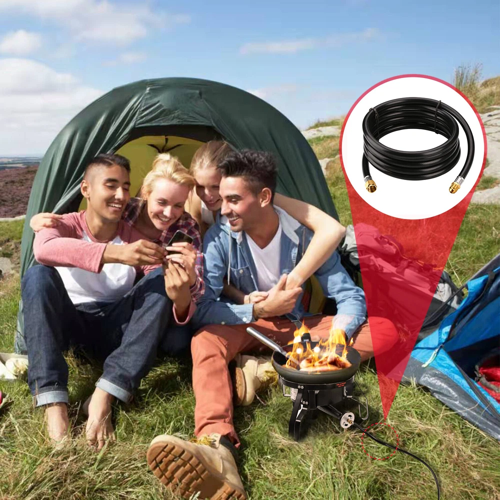12FT Propane Extension Hose, 3/8 inch Female Flare Fitting x 3/8 inch Male Flare Fitting Propane Hose for Gas Grill, RV, Turkey Cooker, Propane Fire Pit, Heater, Generator, Gas Grill, and More Features and further details 12 Feet long propane hose, extended propane hose with 3/8'' Female Flare Fitting x 3/8'' Male Flare Fitting , can meet your BBQ needs. Convenience : 12FT propane appliance extension hose is convenient for you. You don't have to move your larger fuel tank. and it can be used in addition to the existing hose for more length between the propane tank and the gas appliances. Good Quality : Our propane extension hose is made of 100% solid brass end and high quality rubber hose construction withstands weather, scratching, denting and corroding, more flexible and durable. Application: WADEO propane extension hose can be used for BBQ Gas Grill, Turkey Cooker, Propane Fire Pit, Generator, BBQ Gas Grill, Heater and More. Attention: The propane hose is ONLY use for low pressure propane appliance. Please connect your low pressure regulator to a standard propane appliance. 12 FT Propane Extension Hose, 3/8 inch Female x Male Flare Fitting Propane Hose Specification Length: 12 Feet. 3/8'' Female Flare Fitting x 3/8'' Male Flare Fitting. Attention: ONLY use for low pressure propane appliance. Use for: Gas Grill, Turkey Cooker, Propane Fire Pit, Generator, BBQ Gas Grill, Heater and More.