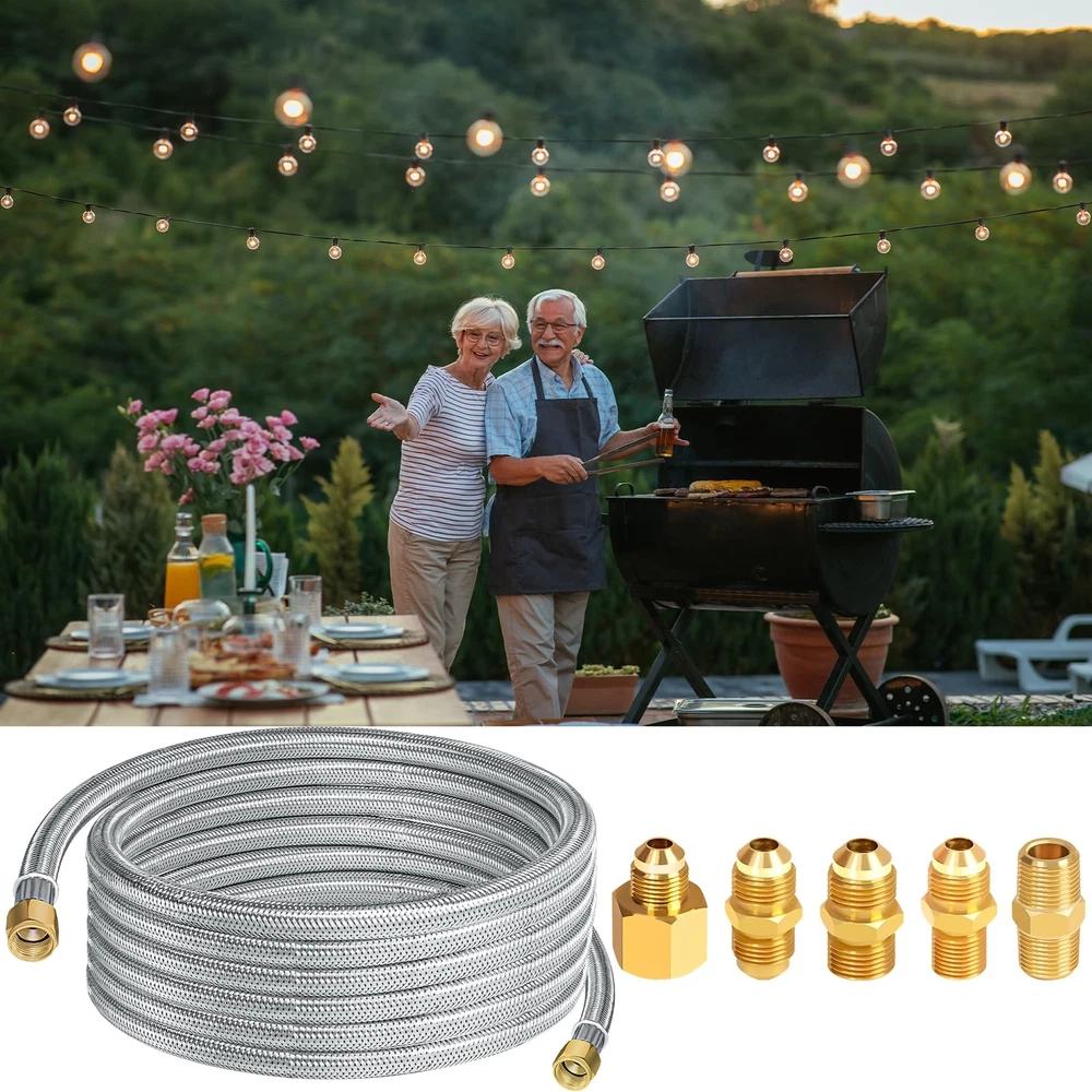 【Premium Material】12 Feet Stainless steel braided propane regulator hose are made of High-strength stainless steel braided. 3/8" female flare fittings on both ends are made of 100% Solid Brass.Durable solid brass provide secured connections between appliance and tank. This Propane Hose with CSA Certification, ensures air tightness and stability. 【Multipurpose Assembly Kit】12FT stainless steel braided propane hose with 5 x Different Conversion Adapter Fittings(3/8" NPT Male x 3/8" NPT Male, 3/8" Flare Male x 3/8" Flare Male, 3/8" NPT Male x 3/8" Flare Male, 1/2" Female NPT x 3/8" Flare Male, 1/4" NPT Male x 3/8" Flare Male). 【Easy to Use】12FT braided propane extension hose can meet your needs and can be used flexibly between propane tank and gas appliance. It can also be used to extend the propane storage tank pipeline on low-pressure equipment. 3/8 "propane hose adapter kit +Buckle Velcro makes the product easier to carry, store and use safely, saving your cost. 【Wide Application】12FT stainless steel braided propane hose has 3/8" internal thread ends on both sides, and is connected with equipment equipped with 3/8" external thread flaring fittings to help you realize multi-equipment connection. It can be used in gas grills, propane burners, fire pits, frying pans, stoves, propane generators, propane smokers, portable generators, etc. 【Quality Assurance】The package includes 1* 12FT 350 PSI High Pressure Propane extension Hose + 5* Brass Adapters + 1* Buckle Velcro + 1* Wrench + 1* Roll Sealing Tape .If you have any questions about this product, please feel free to contact us.