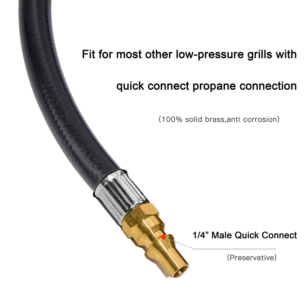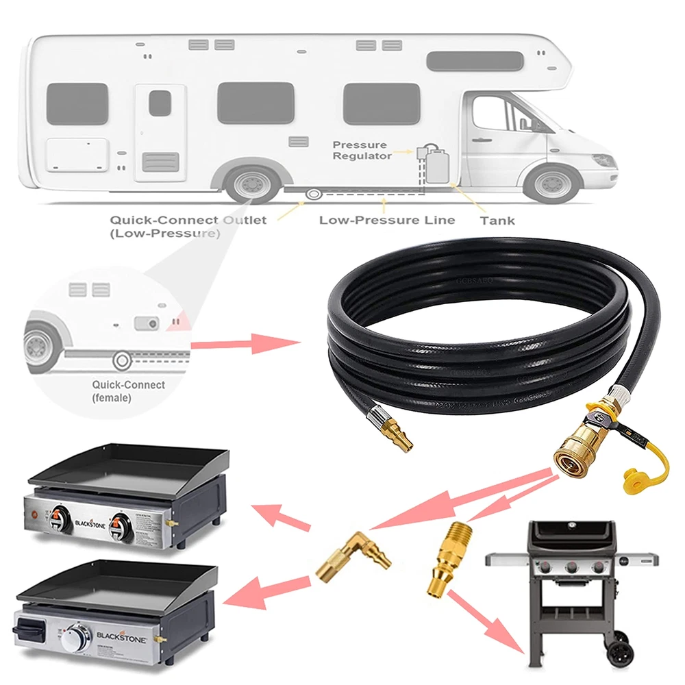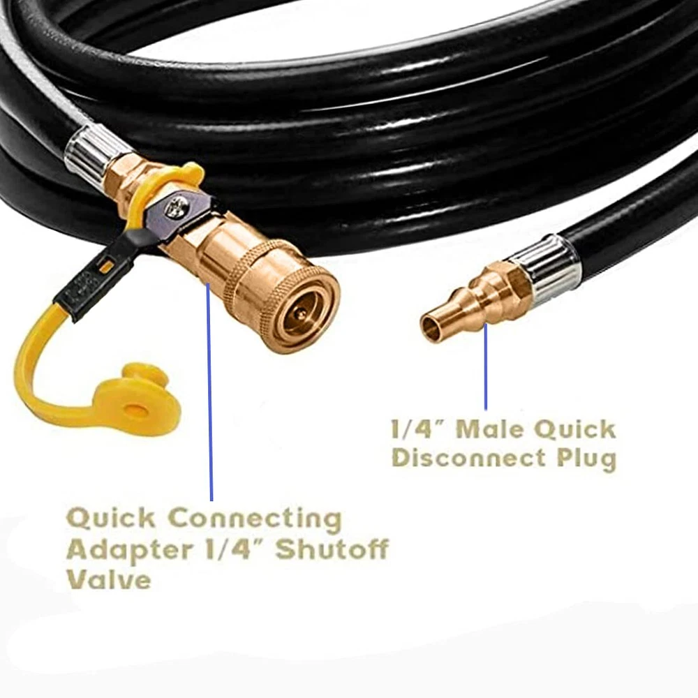 ★【Package Content】The low pressure propane quick-connect hose has heavy-duty solid brass and 12 feet rubber propane hose extension with 1/4” safety shutoff valve & male full flow plug for rvs. ★【How to Use】One side of the rv propane hose is connected to the rv barbecue grill with quick connect propane connector, and the other side is connected to the low pressure system on the rv trailer or camper. ★【Scope of application】The propane hose fit for most other low-pressure grills with a quick connect propane connection, it used with rv's on-board propane supply system . ★【Significance of use】 Now you can connect the hose to the low pressure system on the rv trailer or camper, the hose can help you extend your grill from the rv. The on-off quick connect valve on hose to hook up the eblow adapter on your grill. ★【 Quality Assurance】 Our propane hose with pre-installed fittings have quality assurance,if You Have any questions about it, please feel free to contact us.