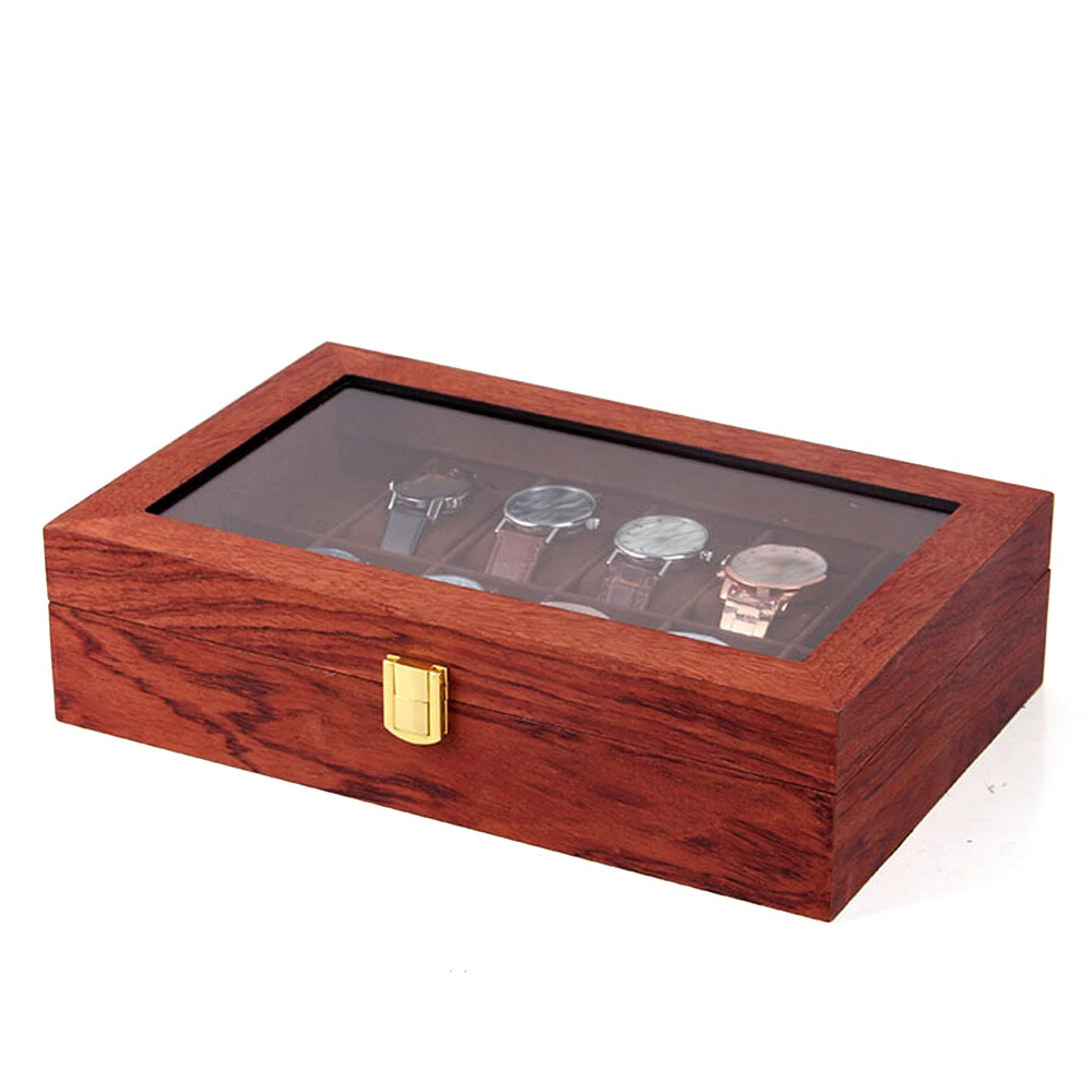 12-Grid Rosewood Watch & Jewelry Display Box for Retail Shop Showcase