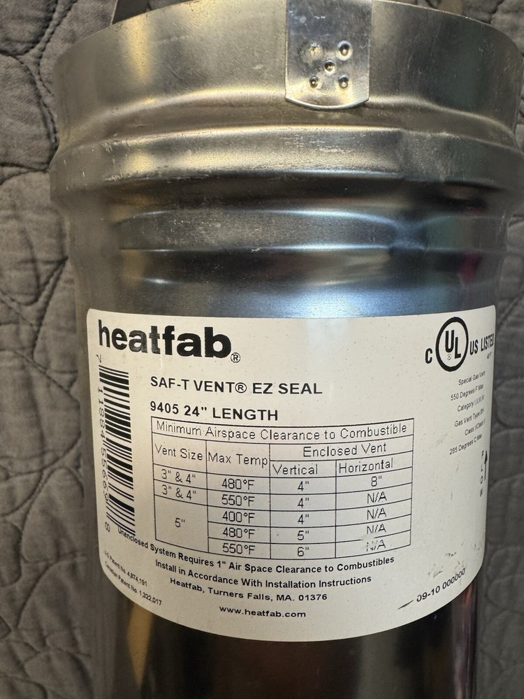 12HR FLASH SALE~z-vent-4"x24" -SAF-T VENT HEAT-FAB STAINLESS STEEL EZ SEAL 9405