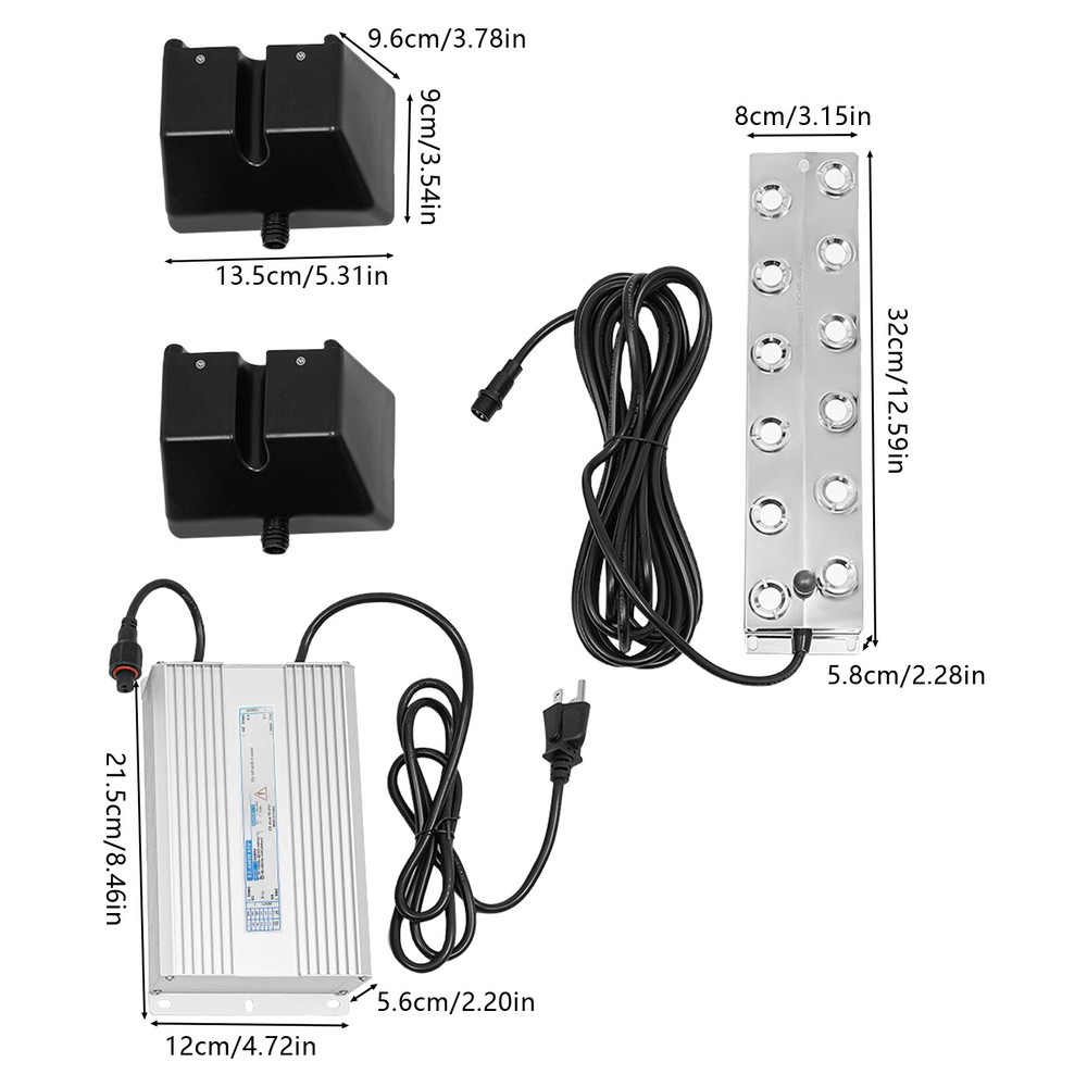 Application This Atomizer Is Suitable for Homes, Yards, Offices, Restaurants, Bars, Parks, Hotels, Etc. Specification Color: Silver Power Supply Material: Aluminum Atomizer Material: Stainless Steel Voltage: 110v 60hz Power Supply Size: 23.5*12*5.6 Cm/9.25*4.72*2.2inch Atomizer Size: 28*6.8*6cm/11.02*2.68*2.36inch Package Size: 35*17*23cm/13.8*6.7*9inch Atomizer Cord Length: 5m/16ft Net Weight: 3.6kg /7.94lbs Package Weight: 3.75kg/8.3lbs Package Included 1* Power Supply 1* Atomizer 2* Buoys 4* Screws 2* the Cover of the Buoy 1* Atomizer Cord HOT!Ultrasonic Mist Maker Pond Fogger Machine 12-Head For Hydroponics Landscape! Description This Is a High-quality Atomizer with High Safety Performance. This Atomizer Is Made of Corrosion-resistan t Stainless Steel and the Power Supply Is Made of Waterproof All-aluminum, so It Is Very Durable. in Addition, This Atomizer Has High Power, so the Amount of Fog Is Also Very Large. This Atomizer Is Suitable for Homes, Yards, Offices, Restaurants, Bars, Parks, Hotels, Etc. Specification Color: Silver Power Supply Material: Aluminum Atomizer Material: Stainless Steel Voltage: 110v 60hz Power Supply Size : 23.5*12*5.6 Cm/9.25*4.72*2.2inch Atomizer Size: 28*6.8*6cm/11.02*2.68*2.36inch Package Size: 35*17*23cm/13.8*6.7*9inch Atomizer Cord Length: 5m/16ft Net Weight: 3.6kg /7.94lbs Package Weight: 3.75kg/8.3lbs Package Included 1* Power Supply 1* Atomizer 2* Buoys 4* Screws 2* the Cover of the Buoy 1* Atomizer Cord Key Features Good Humidification Effect: This Atomizer Has 12 Fog Heads, and Each Head Can Spray Fog Evenly. 12 Heads Running at the Same Time Can Quickly Spray Enough Fog to Humidify a Room. Compared to Small Humidifiers, It Has a Faster and Better Humidification Effect. High-quality Materials: the Power Supply of This Atomizer Is a Waterproof Power Supply Made of Aluminum. the Atomizer Is Made of Stainless Steel Which Is Corrosion Resistant and Dissipates Heat Well. the Atomizer Made with These Materials Has a Long Service Life. High Safety: This Atomizer Comes with a Water Cut-off Automatic Protection Sensor. As Long As There Is No Water Under Your Atomizer, It Will Automatically Power off and No Longer Operate. Waterproof Power Supply Shell: the Atomizer's Power Supply Shell Has a Waterproof Rating of Ip67, so the Power Supply Will Not Be Damaged or Leak Because of Rain or Contact with Water. so Even If You Put It Outdoors, You Don't Have to Worry About the Machine Will Be Damaged or Leaking. Thoughtful Design : There Is a Power Indicator Light on the Atomizer. the Power Indicator Light Allows You to Eliminate the Problem of the Atomization Board and the Power Supply As Quickly As Possible. Thoughtful Design: This Atomizer and Its Power Supply Are Designed with Small Holes on the Side for Easy Fixing. If You Want to Fix the Atomizer in One Place, You Can Use Screws to Fix the Atomizer or Power Supply in These Holes. Sloping Design: the Surface of the Atomizer Is Designed with Two Slopes. This Design Allows for a Larger Amount of Fog to Be Dispersed. in Addition, It Makes the Fog Disperse Evenly. in This Way, the Sprayed Fog Will Look Prettier. Details Waterproof Round Connector: the Connector Between the Atomizer and the Power Supply Is a Special Customized Waterproof Round Connector. This Connector Can Effectively Prevent Water from Entering the Plug, Increasing the Safety of This Atomizer. Two Buoys: This Atomizer Comes with Two Hollow Plastic Buoys. You Can Adjust the Height of the Buoys by Adding Water to Them. According to the Buoys' Height, You Can Adjust the Height of the Atomizer. Application This Atomizer Is Suitable for Homes, Yards, Offices, Restaurants, Bars, Parks, Hotels, Etc. Notes When Installing This Atomizer, Please Be Sure to Use Our Switching Power Supply or Power Transformer and Rectifier Board. Due to the Large Working Current of the Rectifier, the Rectifier Board Must Be Added with an Aluminum Heat Sink, the Effective Area of the Heat Sink Can Not Be less than 1000cm², to Ensure That the Square Bridge Heat Dissipation Is Good. The Fog Produced by the Atomizer Must Be Drilled by Using a Fan, and Each Group of Atomizers Is Recommended to Retain 360cm² Flat Space to Ensure That the Water Temperature Is Below 50℃. The Atomizer Is Not Suitable for Atomizing Corrosive Liquids. in Order to Keep the Atomizer in Normal Working Condition, It Is Recommended to Clean the Surface of the Atomizer and Shell at Least Once Every Two Weeks. After Using the Nebulizer for More than 5000 Hours, the Nebulizer Will Be Aging and the Fog Volume Will Be Small, Then the New Nebulizer Must Be Replaced in Time. Please Allow the Slight Color Difference Caused by the Shooting Light and 1-3 Cm Error Due to Manual Measurement, and Make Sure You Do Not Mind Before Ordering Payment Delivery details Terms of sales About us Contact us Payment We accept ebay payment 。 Fees such as import duties, taxes are not included in the item price or shipping costs. These charges are the buyer's responsibility. Delivery details Shipping: 2-9 working days to: USA Terms of sales We maintain high standards of excellence and strive for hundred percent customer satisfaction. Feedback is very important to us. We hope that you contact us immediately before you give neutral or negative feedback, so that we can address your concerns. It is impossible to address issues if we do not know about them! About us Your satis faction is our ultimate goal. We work hard to earn your trust and future business. Our certified technicians have tested each item before shipping. The unit comes with 1 year limited warranty on all manufacturing defects. a) If you receive a defective item, you may return it or ask for a discount. Please contact us within 14 days after you receive the package. b) What you returned must be intact and in its original packaging as re? u. Customer is responsible for shipping costs of the returned item. c) We will cover the cost of shipping back t with the shipping 