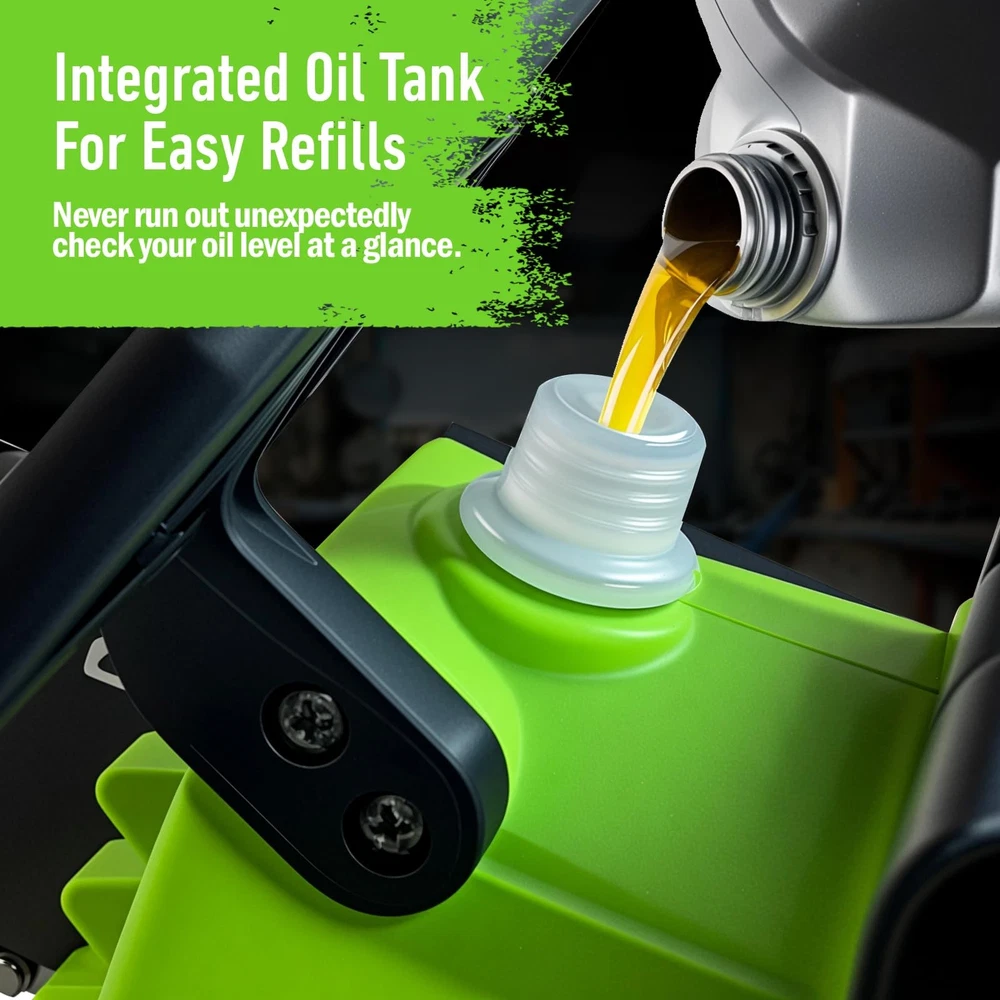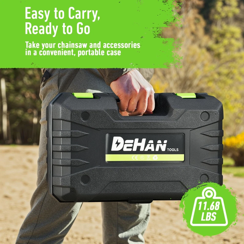 12-Inch Cordless Electric Chainsaw - Powerful, Eco-Friendly, and Low-Maintenance for DIY and Home Projects The 12-Inch Cordless Electric Chainsaw is the perfect tool for homeowners and DIY enthusiasts looking for a reliable, high-performance chainsaw. Powered by a 1000W motor and delivering a 6m/s chain speed, this electric chainsaw offers fast, smooth, and efficient cuts through branches, logs, and small trees. Whether you're trimming your yard, pruning trees, or tackling small home improvement projects, this cordless chainsaw provides precision and ease of use. Key Features: Powerful Cutting Performance: Equipped with a 1000W motor and 6m/s chain speed, this 12-inch chainsaw ensures fast, clean, and smooth cuts through thick branches, logs, and small trees. Perfect for DIY outdoor projects and tree trimming tasks. Eco-Friendly & Low-Maintenance: Say goodbye to fuel, oil, and constant upkeep. This cordless chainsaw is a cost-effective, low-maintenance alternative to gas-powered models. Its quiet motor ensures a peaceful cutting experience, making it ideal for residential areas and neighborhood use without disturbing others. Easy to Handle & Comfortable Operation: Weighing just 11.68 lbs, this chainsaw is lightweight and ergonomically designed for ease of use. The balanced weight allows for comfortable one- or two-handed operation, giving you maximum control and stability during extended use. Long-Lasting Power with Rechargeable Batteries: Powered by two 21V 4.0Ah rechargeable batteries, this cordless chainsaw offers extended runtime, so you can tackle bigger projects without worrying about running out of power. Quick battery swaps ensure continuous work without interruptions. Durable & Hassle-Free: Designed with an auto-oiling system to keep the chain lubricated for smooth operation, this electric chainsaw offers long-lasting durability and low maintenance. Built with high-quality materials, it's ready for frequent use and capable of handling a wide range of cutting tasks. Enhanced Safety Features: Featuring a safety trigger that stops the chain instantly when released, an anti-kickback design, and a safety lock, this chainsaw ensures controlled, safe cuts with every use. If you’re looking for a powerful, eco-friendly chainsaw that’s easy to use and requires minimal maintenance, the 12-Inch Cordless Electric Chainsaw is your ideal tool. Offering quiet operation, long-lasting power, and enhanced safety features, it’s perfect for homeowners, DIYers, and anyone who needs a reliable, efficient chainsaw for tree trimming, pruning, and other outdoor projects. Powerful Brushless Motor Chainsaw: This Chainsaw is equipped with an upgraded brushless pure copper motor that provides superior torque, increased power, and smoother cuts. The brushless design enhances cutting efficiency, reduces friction and maintenance, and ensures longer-lasting performance for all your cutting needs 12 Inch Mini Chainsaw: The 12-inch cordless chainsaw is powered by a 1000W motor and delivers a chain speed of 6m/s, ensuring fast, efficient cuts through branches, logs, and small trees. Perfect for cutting branches, logs, and small trees, it provides smooth, precise cuts for all your DIY and home projects Cost-Effective & Eco-Friendly: Say goodbye to fuel, oil, and constant maintenance. This electric chainsaw offers a budget-friendly, low-maintenance alternative to gas-powered models. Its quiet, powerful motor ensures a cleaner, quieter cutting experience, ideal for residential areas where you can work without disturbing neighbors or the environment Easy to Handle & Comfortable Operation: Weighing 11.68 lbs, this chainsaw is designed for stable, controlled handling during extended use. Its ergonomic design ensures comfort, while the well-balanced weight allows for safe, efficient one- or two-handed operation. Perfect for tackling cutting tasks with ease and precision Enhanced Safety & Durability: The mini chainsaw features a dual safety lock to prevent accidental starts and an anti-kickback system for safer operation. The ergonomic handle offers a secure, comfortable grip, minimizing slip risks during use. Built to last, this chainsaw also includes an auto-oiling system for smooth performance and long-term durability Complete Chainsaw Kit with Everything You Need: The full kit includes 2 x 21V 4.0Ah rechargeable batteries, 1 x charger, 1 x pair of work gloves, 1 x pair of safety goggles, 1 x oil bottle, 2 x guide bars, 3 x chains, 1 x cleaning brush, 1 x screwdriver, and 1 x storage box for convenient organization. Get started immediately and enjoy extended, uninterrupted cutting power with the included long-lasting batteries Improved mold structure: Reinforced battery slot design ensures that the battery is solid and does not loosen during operation. (Tighter batteries are normal.) Upgraded chain tensioning system reinforcement, effectively reduce the frequency of loosening.Users are recommended to use thicker professional chain oil for long term use to get better performance.