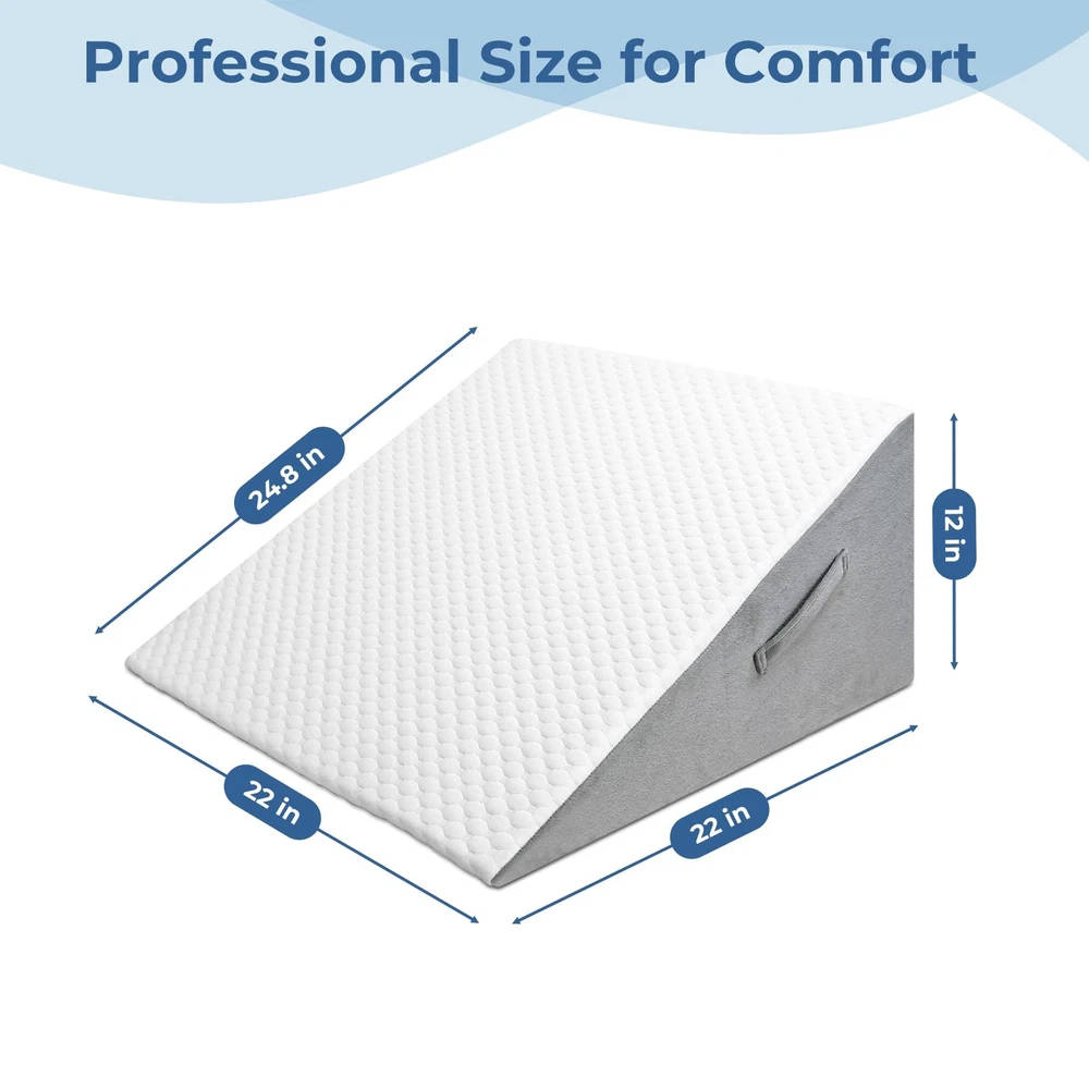 12Inch Bed Wedge Pillow for Sleep Apnea Relief & Comfortable Elevated Sleeping