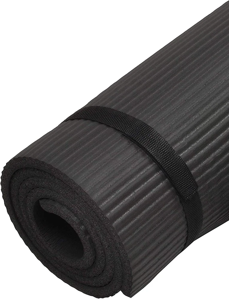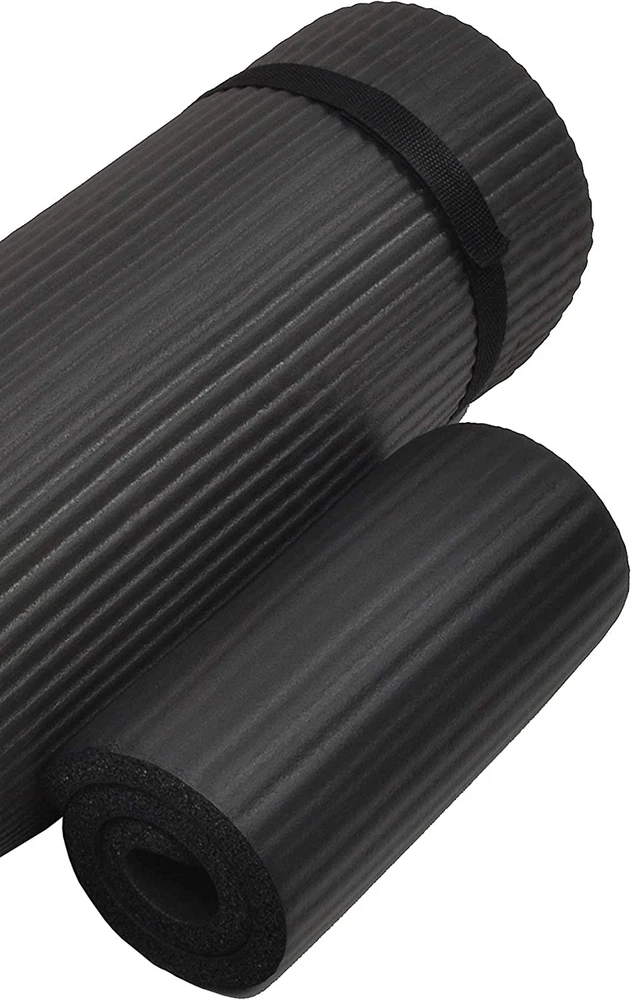 Comes with a regular mat and a knee pad. Regular mat measures 71" Long 24" Wide, 1/2" Thick, ensures comfort for people of all shapes and sizes. Knee pad measures 24" Wide 10" Long, 3/5" Thick With double sided non-slip surfaces, all-purpose premium exercise yoga mat Comes with an excellent slip resistant advantage to prevent injuries. It also comfortably cushions spine, hips, Knees and elbows on hard floors Exceptional resilience allow you to keep your balance during any exercise style. Moisture resistant technology makes the mat to be easily washed with soap and water Easy strapping and light weight feature are added to this mat for easy Transport and storage A free yoga mat strap is included. A knee pad in included Everyday Essentials 1/2-Inch Extra Thick High Density Anti-Tear Exercise Yoga Mat with Knee Pad and Carrying Strap