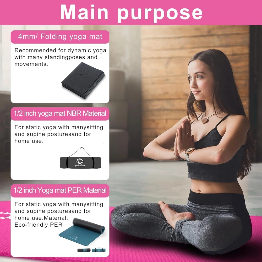 Foldable Non Slip 5mm Yoga Mat for Women Travel Home Gym Workouts