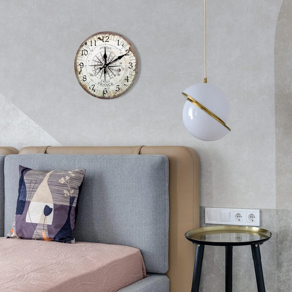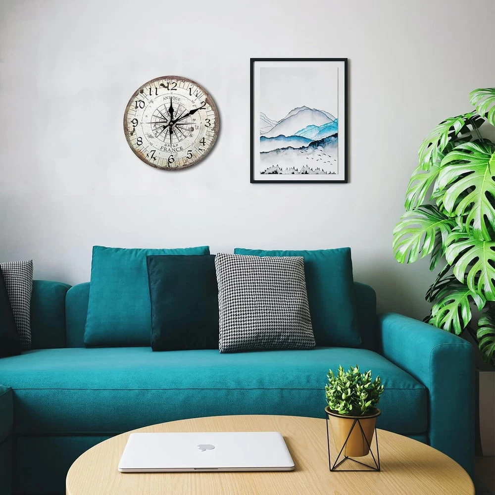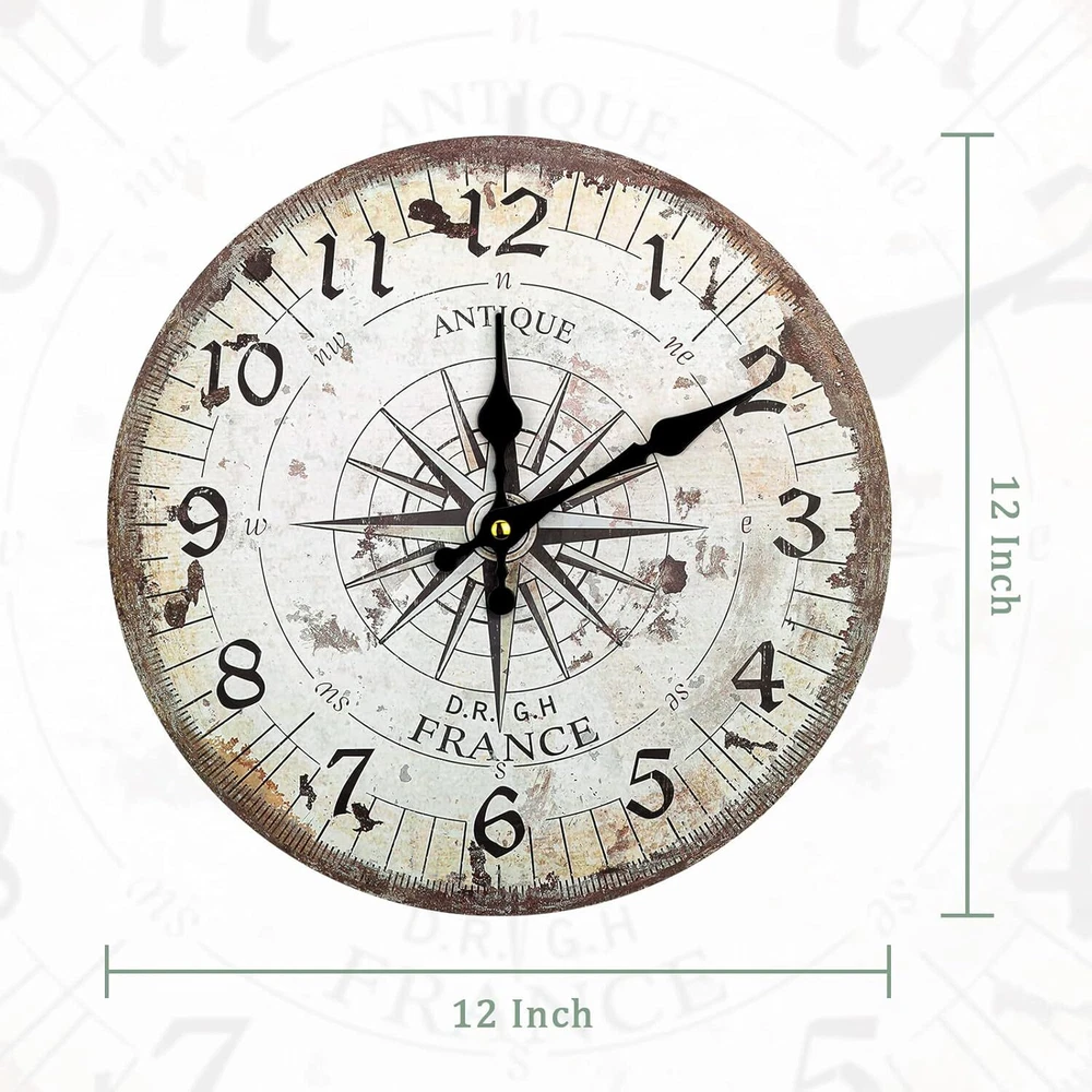 "12-Inch Nautical Wall Clock - Silent, Vintage Wooden Quartz Battery Operated"
