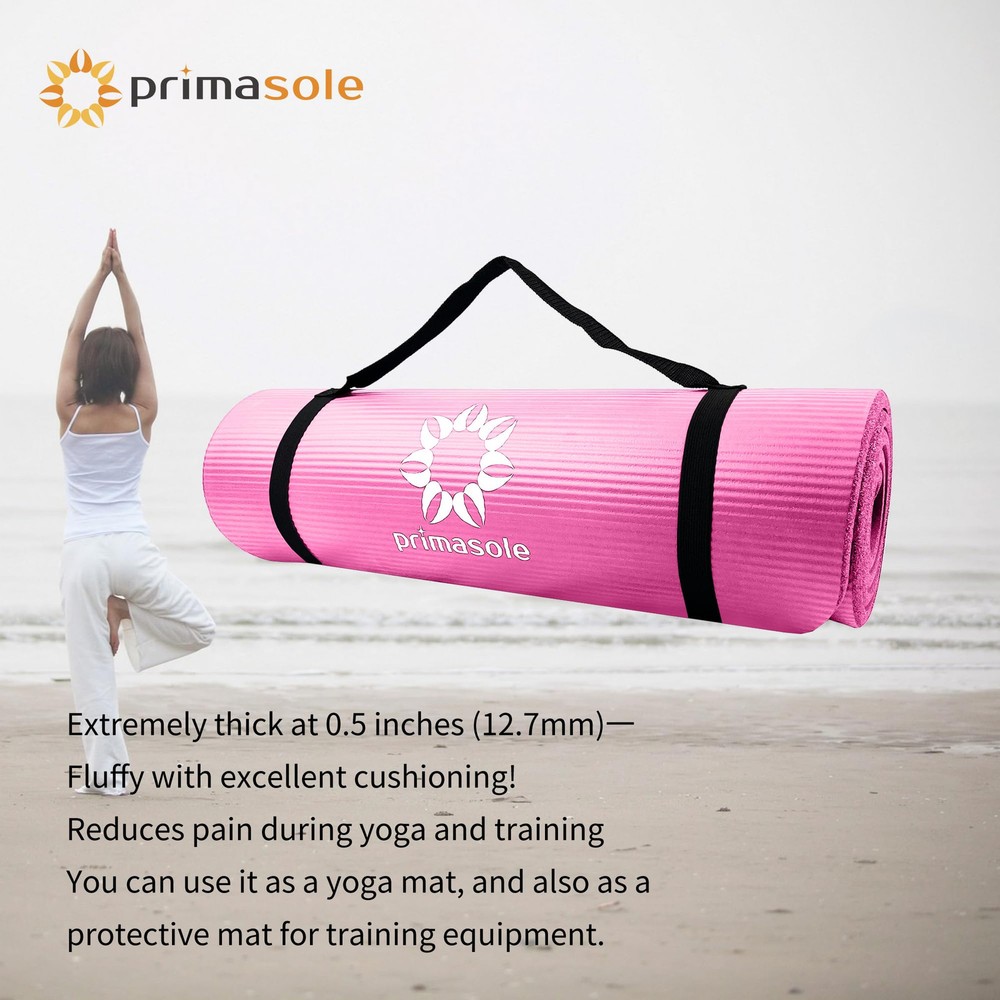 1/2-Inch Thick Yoga Mat with Carry Strap Case for Pilates Fitness Workouts