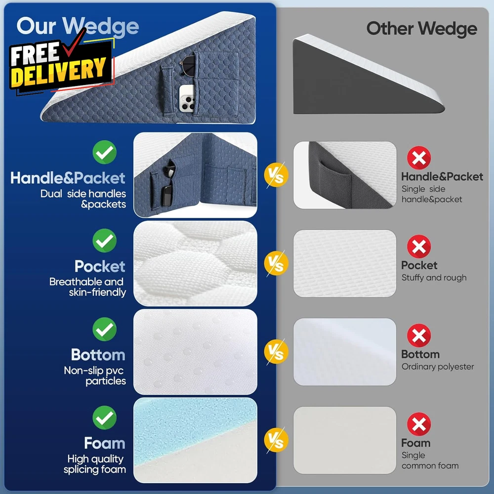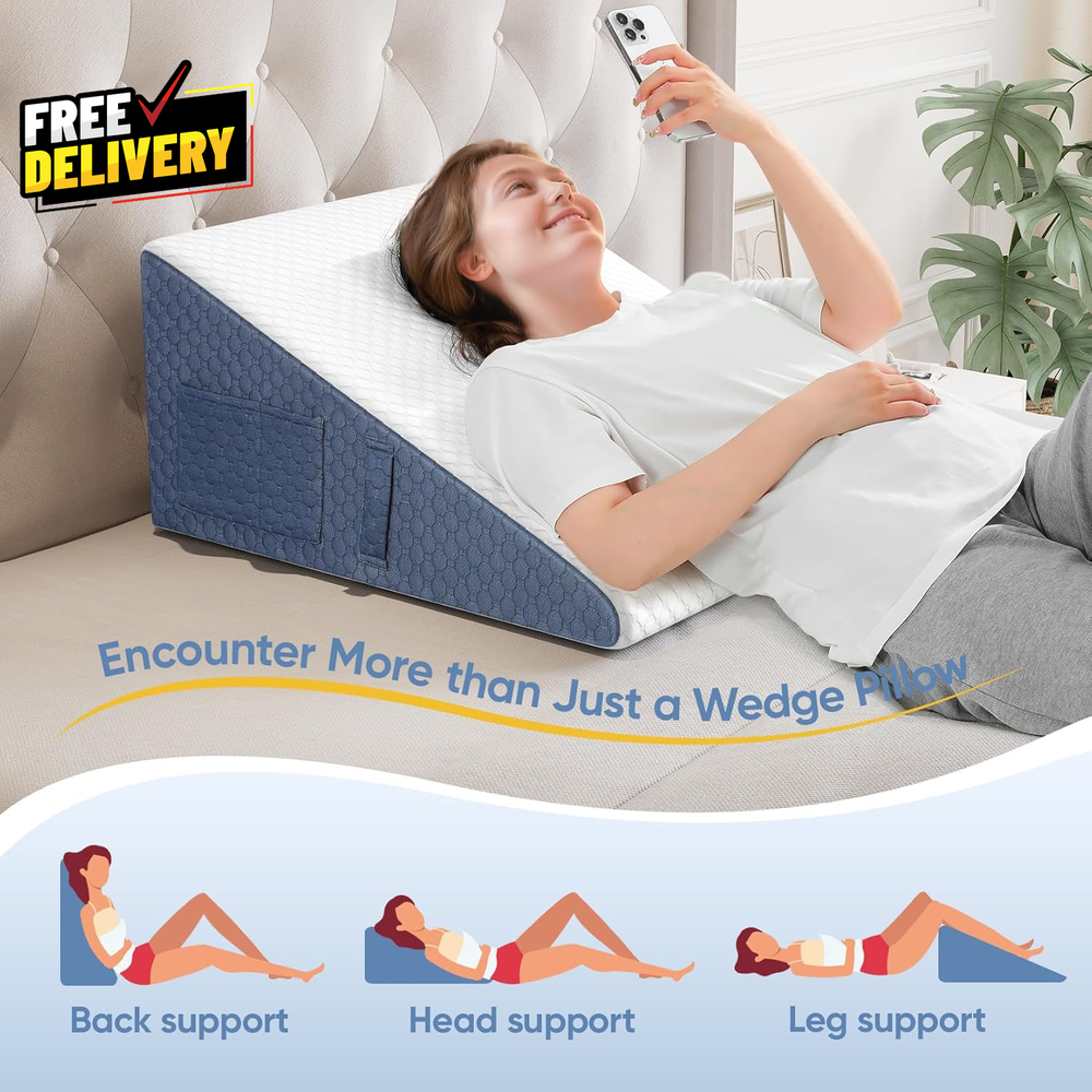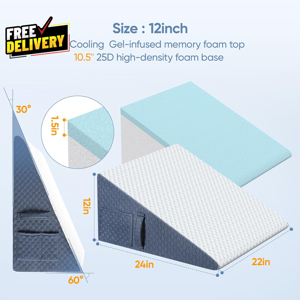 Store New Arrivals Add to Favorite View Feedback Contact 12Inch Wedge Pillow for Sleep Updated Bed Wedge Acid Reflux Heartburn GERD...... Description CERTIFICATED BY AUTHORITIES TO ENSURE SAFETY: wedge pillow has obtained CertiPUR-US certification and Oeko-Tex 100 standard certification. Our production strictly follows these standards to ensure the quality of the wedge pillow, making it a trustworthy choice for you and your family. We offer 3 different pillow heights, 12''/10''/7.5'', to meet the different sleep needs. As for how to choose the most suitable pillow height, we recommend you take into account your sleeping habits, body size, and mattress as consideration, and if you have any special health concerns, we suggest you consult your doctor before purchasing to ensure that the wedge pillow is suitable for your condition. BALANCE OF SOFTNESS AND SUPPORT FOR A NEW SLEEPING EXPERIENCE: The 12'' Wedge Shaped Sleep Pillow features a 10.5'' high-density foam core for reliable support and ensures a sturdy surface for optimal comfort. The 1.5'' gel-infused memory foam top adds extra comfort, allowing you to easily fall asleep even on hot summer nights and wake up refreshed. Let take care of your deep sleep, making your bedtime, deep sleep, and waking-up routine more comfortable, relaxing, and pleasant. MACHINE WASHABLE KNIT PILLOWCASE: Our triangle bed wedge pillow comes with a hotel-grade air-layered knit fabric pillowcase that is not only soft and breathable but also easy to remove and machine washable. With a convenient side zipper design, maintaining cleanliness and freshness is a breeze. The non-slip PVC particles on the bottom ensure that the foam wedge pillow stays in place, providing unparalleled comfort. ONE WEDGE PILLOW FOR MANY PURPOSES: It is not only a gentle support for your sweet dreams but also a flexible and versatile multi-faceted player: Whether you use it as a head or back pillow, it provides just the right amount of support to help you relax your body. When reading, watching TV, or working, it is a back pillow for bed sitting up, allowing your back to get a good rest. Place it on your lap when working, effectively insulate your computer from heat, and keep you cool and comfortable. Snoring, post-operative discomfort, acid reflux, leg swelling, etc, it helps to relieve your discomfort and improve your sleep quality. Item model number JF15AB01 Variety After Surgery,Bed Wedge,Bed Wedge Pillow,Leg Elevation,Memory Foam Pattern Solid Item Firmness Description Medium Number of Pieces 1 Unit Count 1.0 Count Product Dimensions 24"L x 24"W Material Foam, Memory Foam Age Range (Description) All Age Model Name Wedge Pillow Item Weight 4.25 pounds Fill Material Foam, Gel Memory Foam Material Feature Breathable, Gel-infused Memory Foam Layer, Good Resilience Special Feature Adjustable, Compressible, Portable, Removable Cover Color Navy Blue Shape Wedge Use for Whole Body Maximum Tilt Angle 30 Degrees Recommended Uses For Product Acid Reflux&GERD, Back/Shoulder/Neck Pain, Improve Circulation, Leg Swelling, Maternity, Pregnant Care, Reading, Recovery After Surgery, Resting, Sitting, Snoring Material Type Free environmentally friendly Fabric Type Polyester Product Care Instructions Machine Wash, Non-Machine Washable Foam ABOUT US Prior to making any purchase from our store, we’d like to introduce ourselves. My name is Shahzad Yaqub , and I am the proud owner of Epic Emporium Deals , located in the great state of Illinois, USA. I have been an active and trusted eBay seller since Jan 14, 2025 . At Epic Emporium Deals , we are committed to offering competitive prices and top-quality products . Our extensive collection features a wide variety of items, including media such as books, movies, music, and games , as well as electronics, toys, sporting apparel, clothing, tools , and general home and garden essentials —and much more! If you have any questions or require assistance, please don’t hesitate to reach out. Your satisfaction is our priority, and we look forward to providing you with an exceptional shopping experience. SHIPPING We are always working hard to ensure your package arrives as soon as possible. Please understand that some factors like weather, high postal traffic, and the performance of shipping companies are outside of our control. We offer free shipping to the lower 48 states and ship within 2 business days of payment, usually sooner. We do not accept P.O. Boxes. Please provide a physical address. For shipping outside of the continental USA, we only use eBay's Global Shipping Program. The item is shipped to IL and then sent to the rest of the world. International customers are responsible for all duties and taxes. Continue to 'check out' to calculate costs for shipping the item to your country. Messages regarding eBay's Global Shipping Program MUST be directed at eBay EXCLUSIVELY. RETURNS We do not accept returns under normal circumstances. However, we will gladly consider a return if the item is received broken or if the wrong size is sent to you. In all other cases, returns will not be accepted. CUSTOMER SATISFACTION We try our very best to make sure every customer is completely satisfied. If there's a problem, message us! We're happy to help.