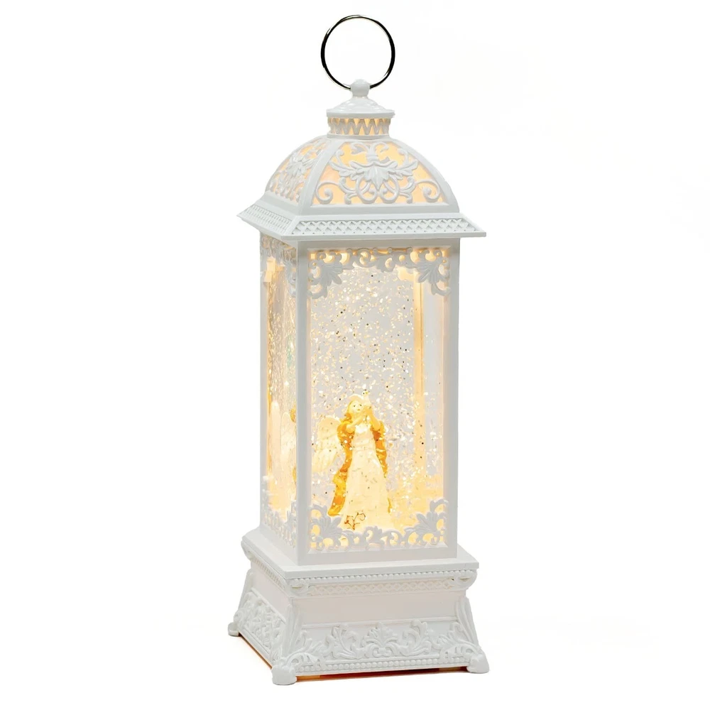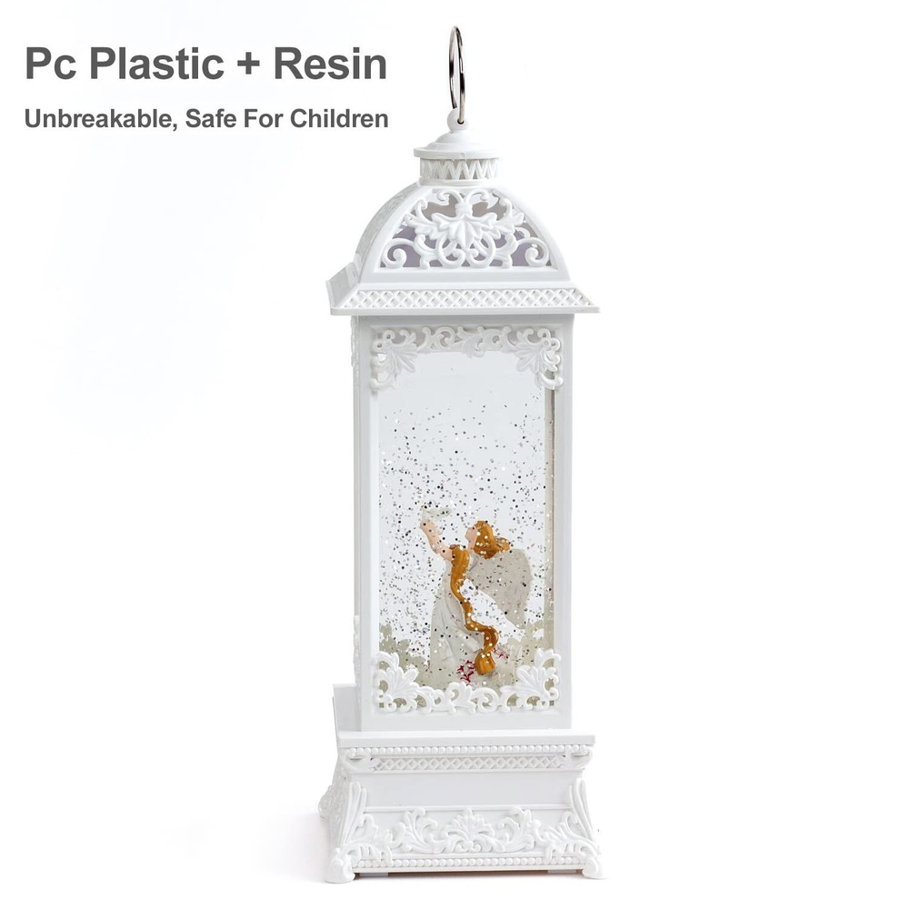 12” White Angel with The Pearl Snow Globe Lantern Lighted Box Night Light Battery Or USB Operated Led Lighted Water Glittering Music Playing for Home Decoration Product Details Style: White Angel With Dove Brand: DANVON MPN: Music box lantern UPC: 788431443619 EAN: 0788431443619 Brand: DANVON Material: Resin, ABS Plastic Color: White Product Dimensions: 4"L x 4"W x 12"H Style: White Angel With Dove Brand: DANVON Material: Resin, ABS Plastic Color: White Product Dimensions: 4"L x 4"W x 12"H Style: White Angel With Dove Item Weight: 3.4 Pounds Base Material: Resin, ABS Plastic UPC: 788431443619 Item Weight: 3.4 pounds Manufacturer: DANVON Country of Origin: China Item model number: Music box lantern Batteries required: Yes Measurements & Music Playing: 3.4 pounds, dimensions of the lantern: 4" x 4" x 12". The music is Castle in the Sky. USB / Battery Operated:Included USB to DC cable allows you power on the snow globe lantern without batteries. You can also operate it with 3 AA batteries, so that you can place it in any place that you like. Decoration & Gift Choice:The sculpture is a spiritual representation of purity, innocence, peace, and the Holy Spirit .A fantastic lighted snow globe lanten decorations for the home. With gift wrapped, also a best gift choice for your family and friends in Christmas, Valentine's Day or Birthday. Well Designed & Well Constructed: Unique pavilion frame snow globe with white angel holding dove of peace figurine inside, high quality resin and ABS plastic promising long-time durability. A centerpiece which can keep company with you for a long time. Easy To Use:The LED light is turned ON/OFF by a two-way switch on the bottom. Flicks the switch to one end will illuminants holy angel and dove, simulates shimmering effect by the silver glitter flakes. Flicks the switch to another end will turn on LED light and music will play.