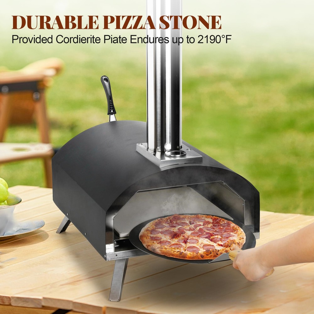 Wood-Burning Pellet Pizza Oven: Heat up with wood or charcoal right out of the box and enjoy the light wood-burning flavor; Turn your backyard into a pizzeria; This versatile pizza oven maker can be used not only for pizza but also for baking breads, grilling meats, and more Versatile & Portable: This Lightweight and sturdy outdoor pizza oven with folding legs is easy to port and store; Whether you're hosting a party or enjoying a family meal, this portable pizza oven is a must-have for your outdoor cooking gear Internal Thermometer: The outdoor pizza maker comes with a built-in thermometer that allows you to easily monitor the internal temperature of the oven, farewell to soaked or scorched pizza, and enjoy restaurant-quality pizza comfortably Excellent Quality Construction: This Granule Pizza Oven is built with high-quality stainless steel for durability and long-lasting performance; This outdoor pizza oven is sturdy and compact it safely cooks all types of food Convenient to Use: Our pizza ovens for outside is very easy to install and easy to use, and does not require any expertise; just place the pizza in the oven, watch the surface of the pizza to adjust the rotation speed, and immediately enjoy the real stone-grilled pizza