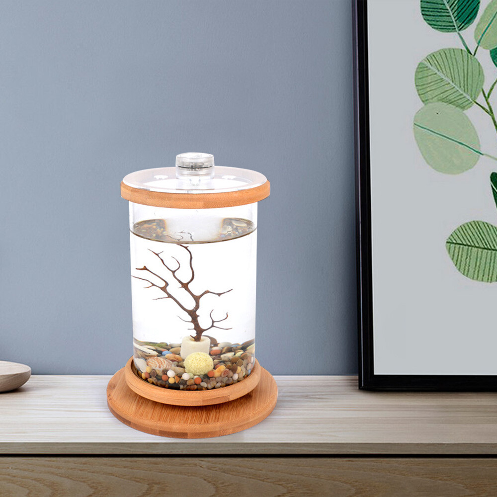 Aquarium Fish Tank 1.2L Small Betta Tank Starter Kit with LED Light and Description This high-quality eco fish tank has a beautiful appearance and an active landscape inside, making it a charming tabletop decoration. 360° rotation and LED lights allow you to view them in all directions and at night. The glass has a good light transmission and beautiful curvature to enhance your visual enjoyment. It is ideal for home use or as a gift for a friend! Key Features Sturdy and Durable: The high-quality bamboo, glass, natural sandstones, and resin make it resistant to break, corrosion, and fading, ensuring a long service life. Clear View : The 360° rotatable design allows you to view your fish more conveniently by gently spinning the tank. The clear glass tank ensures a clear view of the inside fish and the water status, thus putting you in a good mood while timely replacing water. LED Light Design : The LED light with high brightness and low electricity consumption brings you visual enjoyment. It also provides energy for your water plants(you can prepare real plants yourself) so photosynthesis can provide oxygen to your fish. Beautiful Appearance : The clear glass, bamboo with natural texture and lifelike view inside blend very well with each other, like a small natural pond. The light shines into the water's surface, making it appear sparkling, vivid, and active. Beneficial to Your Body & Mind : Observing fish swimming not only makes you feel relaxed for relieving stress and improving nighttime sleep but also enhances your attention and creativity, helping you become more focused and efficient in your work and study. High-efficiency Filtration: Wide and deep design can accommodate more filter materials(not included), helping increase the filter area and achieve efficient filtration. Small Footprint : It's compact(5.7*5.7*7.08in) and can accommodate 0.3Gal water, you can place it on any small tabletop without taking up much space. Easy to Clean : The smooth glass tank and lid design allow you to clean this product easily with wet wipes. Exquisite Gift : The delicate fish tank adds a sense of sophistication and happiness to life. You can send it to your kids, classmates, friends, colleagues, and family for festival days or birthday parties, giving their home a natural touch. Customer Service: We aim to provide quality products and services. If you have any problems, please feel free to contact us. We will reply and solve the problem for you as soon as possible. Details Solid Base: The thickened and enlarged base (5.7" in diameter) can increase the stability of the product and protect the tank from sliding. Lid with Holes : It facilitates oxygen circulation and feeding the fish, allowing you to better care for your fish and providing it with a healthier environment. Rounded Corners: The rounded and burr-free edges provide a comfortable and safer touch for you. Application This eco fish tank can be placed as decoration in the living room, corridor, entrance hall, study, dining room, bookstore, study room, bedroom, conference room, office, an d other places. Specification Material: Glass, Resin , Sandstone, Bamboo Color: Clear, Wood Color Shape: Cylindrical Light Source: LED Target Species: Fish Style: Compact, Modern Specific Uses For Product: Indoor Power Supply: 2*3V CR2032 Cell Batteries(Included) Capacity: 1.17L/0.3Gal Gross Weight: 0.5kg/1.1lbs Tank Size(D*H): 10*15cm/3.94*5.9in Product Size: 14.5*14.5*18cm/5.7*5.7*7.08in Package Size: 15*15*26cm/5.9*5.9*10in Package Included 1 * Eco Fish Tank Notes Bamboo frames are spliced together and will inevitably have wood knots and spliced textures. Please make sure that you do not mind before ordering. This item does not include fish. Fighting fish cannot live in groups, they will fight and only one should be kept in a container. When keeping fish, please keep the water level at 1 inch from the mouth of the bottle so that they have enough space to breathe from the water's surface. We recommend waiting until you receive the product and install it, add water, and keep it for about 3 days before buying the fish. Please pass the fish through the water before placing them in the bathtub. Lights can be turned on for a short time when viewing and feeding fish. It is recommended to turn on 8 hours to replenish the light to the aquatic plants usually about every 3-5 days. Please avoid long-time sunlight as too long a time is easy to breed algae. Please allow the slight color difference caused by the shooting light and 1-3 cm error due to manual measurement, and make sure you do not mind before ordering. Payment Delivery details Terms of sales About us Contact us Payment We accept ebay payment 。 Fees such as import duties, taxes are not included in the item price or shipping costs. These charges are the buyer's responsibility. Delivery details Shipping: 2-9 working days to: USA Terms of sales We maintain high standards of excellence and strive for hundred percent customer satisfaction. Feedback is very important to us. We hope that you contact us immediately before you give neutral or negative feedback, so that we can address your concerns. It is impossible to address issues if we do not know about them! About us Your satis faction is our ultimate goal. We work hard to earn your trust and future business. Our certified technicians have tested each item before shipping. The unit comes with 1 year limited warranty on all manufacturing defects. a) If you receive a defective item, you may return it or ask for a discount. Please contact us within 14 days after you receive the package. b) What you returned must be intact and in its original packaging as re? u. Customer is responsible for shipping costs of the returned item. c) We will cover the cost of shipping back t with the shipping rate indicated in the registration page. We will send you a new unit or refund the full payment you paid. Thank you. Contact us Business Hour Business Hour: Monday To Friday: 8:30