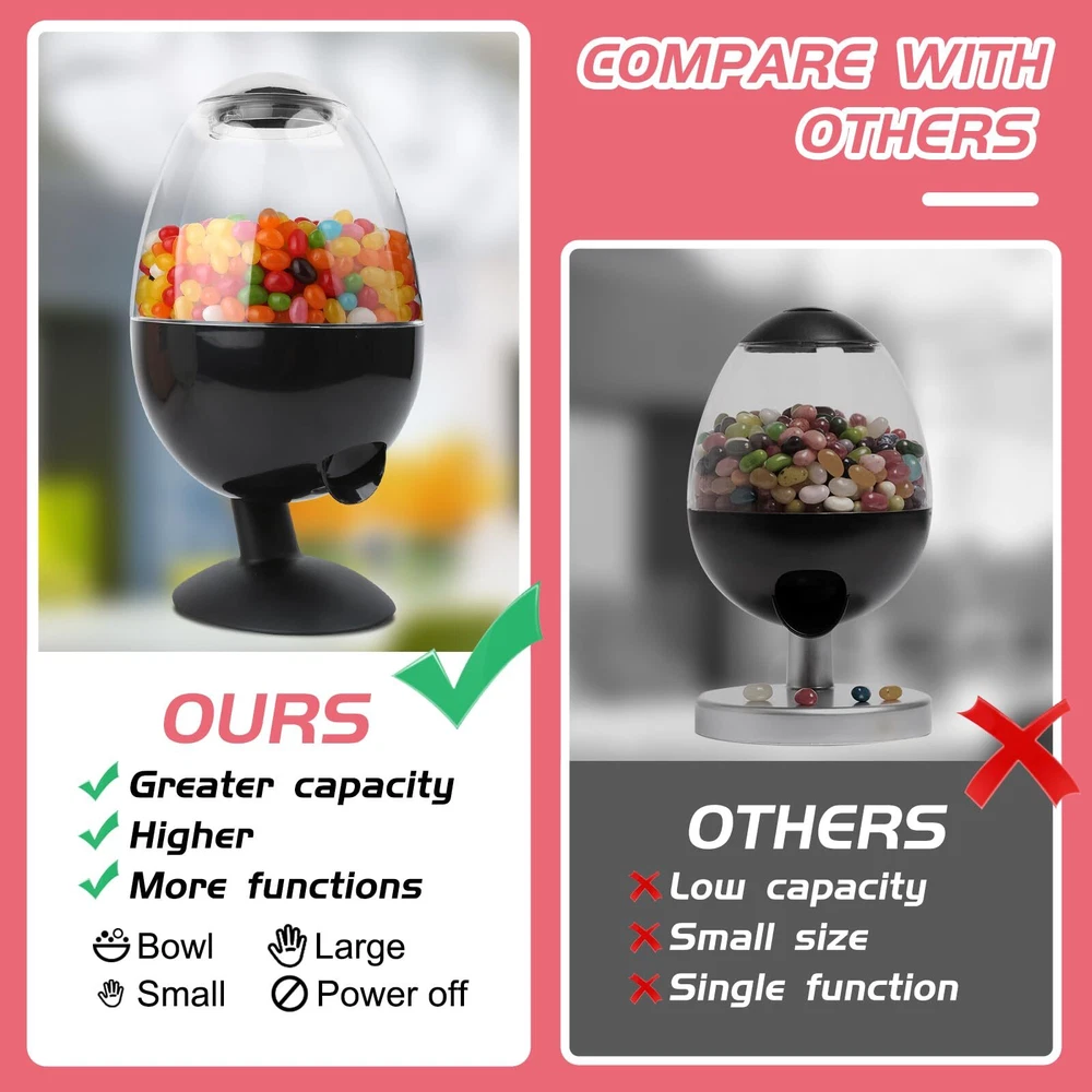 ๐ญใ๐๐๐ฐ ๐๐ฉ๐ ๐ซ๐๐๐ใAs designers of the automatic candy dispenser,we have found that the old candy dispenser's reflective base causes the candy delivery mechanism to run when not needed, resulting in candy falling on the ground. So we improved the base to avoid this problem. Of course,the best thing is to adjust the down switch button to the off state when not in use. ๐ฌใ๐๐ฎ๐ญ๐จ๐ฆ๐๐ญ๐ข๐ ๐๐๐ง๐๐ฒ ๐๐ข๐ฌ๐ฉ๐๐ง๐ฌ๐๐ซใAuto candy dispenser is usually used in public places, we want people to get the candy without touching,avoiding their hands sticking into the candy directly and keeping hygiene,so we designed this candy machine,which has 3 dispensing options and sensitive sensing device,you only need to stretch out your hand to sense to get the candy. ๐ญใ๐๐ฅ๐๐ฌ๐ฌ๐ข๐ ๐๐จ๐จ๐คใDesktop candy dispenser measures 12.2*7.8in,has a larger capacity and a thickened case for durability.Candy dispenser has an oval shape appearance and automatic motion sensor function.The combination of and technology candy dispenser will surely be the star product in the party. ๐ฌใ๐๐จ๐ง๐ญ๐๐ข๐ง๐ฌ ๐ ๐๐๐ซ๐ข๐๐ญ๐ฒ ๐๐ ๐๐๐ง๐๐ข๐๐ฌใcandy dispenser has a good seal to keep candies,cereals fresh.Great for dispensing M&M's,chocolate beans,jelly beans,coffee beans,candies,peanuts.Can surprise party guests and enjoy a nice snack time together. ๐ใ๐๐ข๐๐ญ ๐๐๐๐๐ฌใCandy dispenser countertop is suitable for office desk, office pantry,bar, cafe, classroom,home game room, party decoration.Desk candy dispenser has a beautiful package,can be used as housewarming,Halloween, Christmas gift,it's a perfect choice for candy lovers,spouses,parents and children.Can add attraction to your restaurant,and business.
