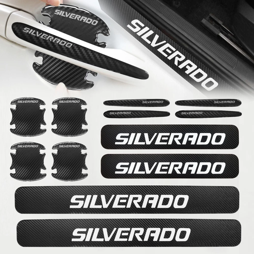 Door Sill Scuff Cover Stickers Made of high quality Carbon Fiber Textured Faux Leather, Anti Scratch and abrasion resistant, durable and effective in protecting car door sills. Easy Installation: P lease wipe the car door sill clean before installing, to ensure that there is no oil and dust first, then remove the protective paper on the back of the sticker, gently stick on the door sill above to ensure that no air bubbles are generated. Simple Maintenance: When the car door sill protector reflective sticker is stained with dirt or oil, simply wipe it with a damp rag and it will look like new with a gentle wipe. Door Cup Stickers & Door Handle Stickers Material: Carbon Fiber Texture Vinyl Stickers + Epoxy Resin Self adhesive , won’t fall of easily, will keep your door cups looking like new, without changing the appearance in any weather. No more scratches to the door handle cups Easy to Install: Clean car door handle cup and let it dry, then tear off the protector film from adhesive backing, stick film onto the cup and adjust the perfect position. Package Included : 4PCS Door Sill Scuff Cover Stickers (2 Front + 2 Rear) 4PCS Door Cup Stickers 4PCS Door Handle Stickers