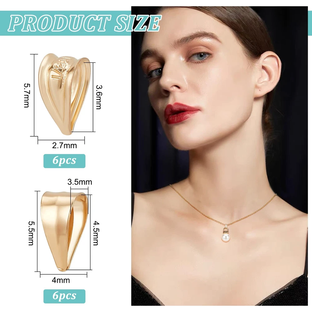 Package Includes: 12pcs (6 sets) 14K Gold Filled Pinch Clip Clasp, enough quantity for your spare and application in daily life, meeting your different needs 【Measurement】:Small: about 5.7mm long, 2.7mm wide, 3.6mm inner diameter.; 6pcs. Large: 4mm wide, 5.5mm long, 2.5mm thick, hole: 3.5x4.5mm.; 6pcs. Notice: This is mini accessories, please make sure the size before purchasing Material: Made of 5% 14K gold and 95% Copper; There's a layer of 14K gold pressured-bonded to the brass, which is durable and long-lasting, can be used for a long time 【Wide Usage】: Perfect for DIY jewlery project, necklaces, bracelets, handmade jewellery, jump rings connecting, earring making, etc 【Convenience】: Match with most of jewelry for different occasion, perfect gift for your friends and family.