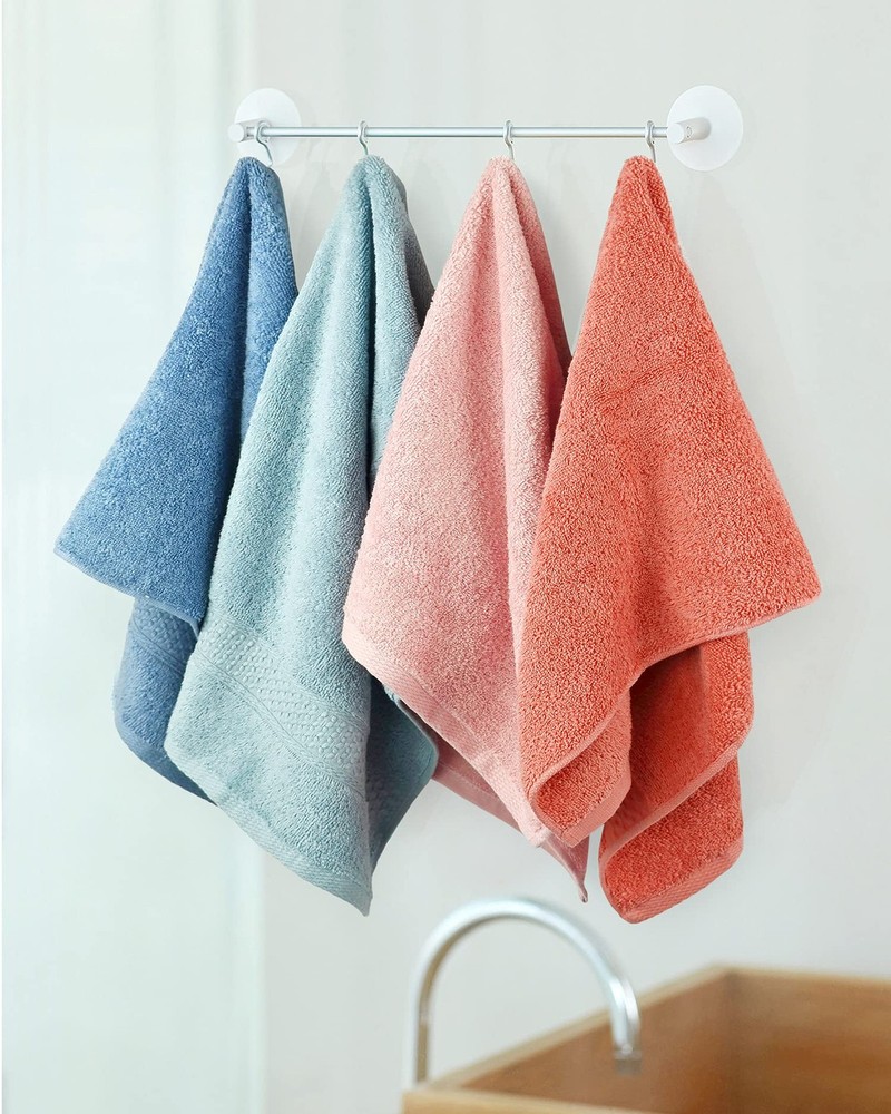 The hand towels are designed for your all family members or for your different daily needs due to the 12 colors design - You don’t have to worry about mixing the towels with others. Each towel measures about 13 x 29 inches and weighs about 3.2 oz that means they are lightweight design but also means they are quick drying that it takes less than a night (12 hours) from wet to dry by air. The key feature of the all cotton hand towels is Ultra soft because they are made of 100% cotton and weaved by single cotton fibers that makes them much softer than towels weaved with double cotton fibers. Bulk Hand Towels with Assorted Colors: There are 12 hand towels packaged in one bag for your different daily needs, or for your different family members that everyone could choose their favorite colors Ultra Soft Towels: These bathroom towels are made of 100 Cotton and weaved with single cotton fibers; There are more than 144 terry loops per square inches that means they are softer than hand towel weaved with double fibers Not too thick or too thin: Each towel weighs about 3.6 Oz and measures about 13 x 29 inches that is medium thickness for both fluffy and quick dry, it may takes less than a night from wet to dry by air Versatile Hand Towels: 12 bulk hand towel set with assorted colors makes it infinite possibilities; Hang some at the main bathroom or the guest bathroom, put some at kitchen, send some to friends and relatives, or just store some for later Well Considered Details: These hand towels are reactive printing dyed that means they’ll keep their vivid colors after washing and washing; Each edge is reinforced and every corner is double stitched for long lasting