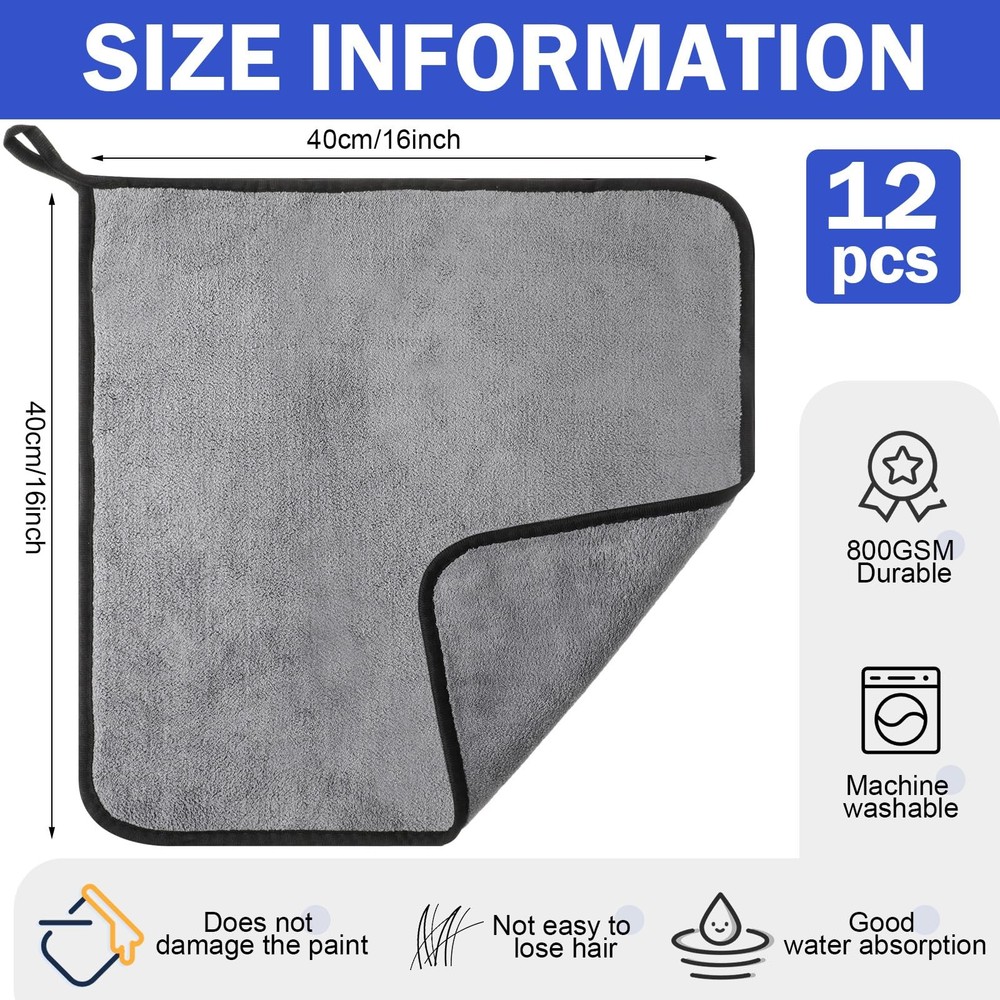 Features: Utility gifts: You can prepare microfiber cloth for cars for your backup or send to your friends, relatives, colleagues, classmates and neighbors as delicate gifts, bringing much convenience to them and improving your relations. Easy to : The car wash cloth measures about 16 x 16 inches. It has compact size and light weight, easy for you to or take out with, without taking up too much space. Specifications: Material: coral velvet and terry cloth Color: gray Size: about 16 x 16 inches Package includes: 12 x Car microfiber towels Notes: Manual measurement, please allow slight errors on size. The color may exist a slight difference due to different screen displays. Nice Combination for Convenient Use: the package will provide you with 12 pieces of car microfiber towels, they are ample in quantity, enough to meet your daily use and needs, you can also share them with your friends Reliable Workmanship: these microfiber drying towels for car detailing are made of coral velvet and terry cloth, which are thick, comfortable, soft and absorbent; It is also reusable, not easy to deform or fade, serviceable for long term use Polishing the Waxing: the car wash towel is suitable for polishing and waxing, also can wipe out dust and dirt of your car, making your car tidy and clean, thus providing you with a good driving experience Easy to Wash: the microfiber car towel is easy to use, which can be both hand washed or machine washed, it also can absorb water and dry quickly, serviceable for long term use Widely Applicable: the microfiber car towel enjoys a wide range of applications, it has no scratches or fur, suitable for motorcycle, boat, truck, SUV and so on, also can be applied for dishwashers, household cleaning, microwave ovens, dressers, floors, bathtubs and so on