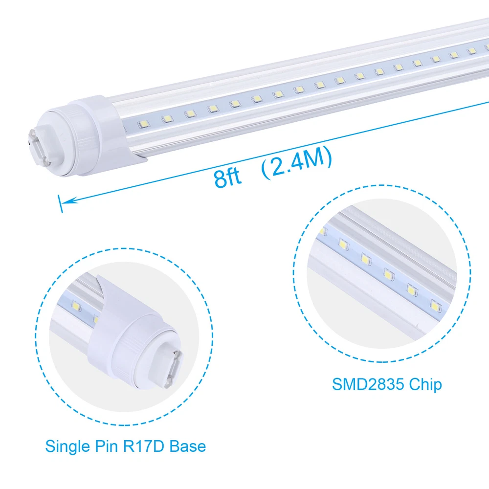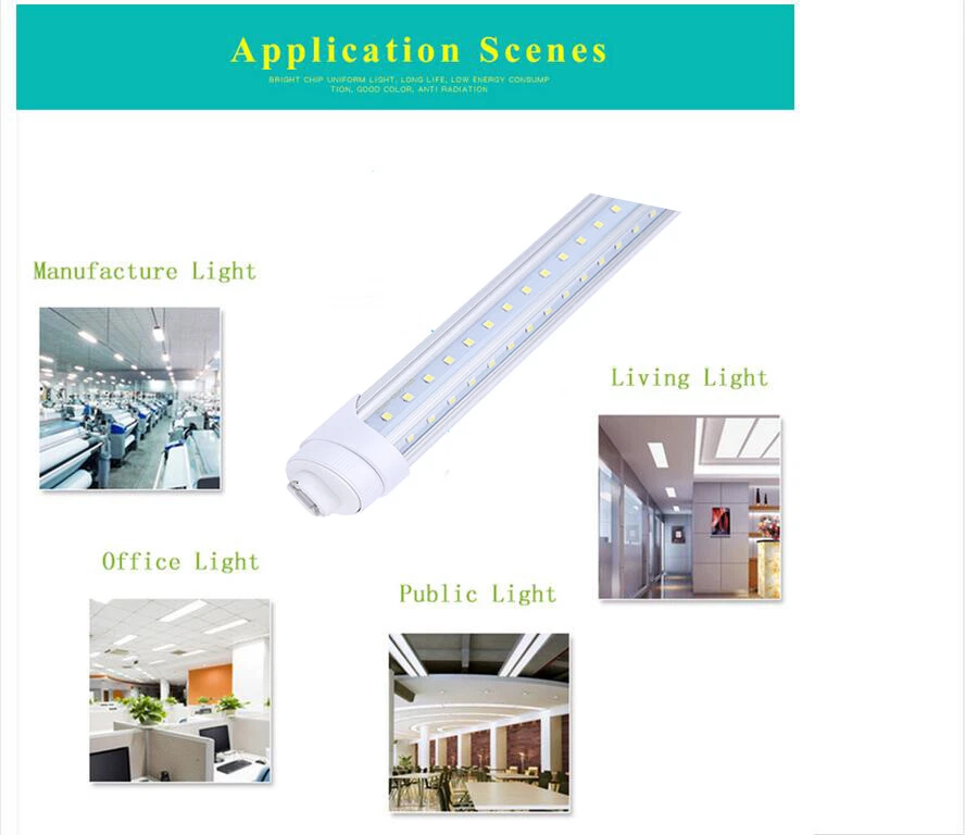 Product Description: Color: 6000~6500K Cool White TYPE: LED R17D HO Base Material: SMD2835 LED chips, Houseing: Aluminum+PC Power Source: AC Voltage: 110V Wattage: 45W Installation Method: R17D Dobule End Power Plug Format: A- US style Special Features: Input Voltage (VAC) :100-240VAC, Input Frequency (Hz) :50/60 Hz, Working Current: 0.35mA, Type: 2835, Base: R17D Life :L85 @ 50,000 hours, Usage: LED T8 Tube Indoor use only Assembled Diameter: 8 Feet Special note:Installation does not need ballast, if replace the original energy-saving tube, please delete the ballast Package: 12pack LED tube light Product Description: Color: 6000~6500K Cool White TYPE: LED R17D HO Base Material: SMD2835 LED chips, Houseing: Aluminum+PC Power Source: AC Voltage: 110 volts Wattage: 45W Lumen:5400LM Installation Method: R17D Dobule End Power Plug Format: A- US style Special Features: Input Voltage (VAC) :100-240VAC, Input Power (W): 45W Input Frequency (Hz) :50/60 Hz, Working Current: 0.35mA, Type: 2835, Base: R17D Life :L85 @ 50,000 hours, Usage: LED T8 Tube Indoor use only Assembled Diameter: 8 Feet Special note:Installation does not need ballast, if replace the original energy-saving tube, please delete the ballast Package: 12pack R17D LED tube light Payment Delivery details Terms of sales About us Contact us Payment 1.We only accept payment by Paypal. 2.If you pay by paypal with E-check, it normally takes 5 business days to clear, Once your E-check payment clears, your item will be dispatched within 1-2 working days. 3.Payment must be received within 7 days after the auction ended. Delivery details 1.All orders ship within 24 hours after receiving your payment. 2. Fedex shipping from our US warehouse, takes about 3-5business days for delivery. 3.Please verify your address during checkout. We are not responsible for any wrong or undeliverable addresses. Terms of sales We strive to ensure 100% satisfaction for each and every one of our customers. we offer a 30-day 100% money-back guarantee on all eBay orders. If your item isn't just as you wished, simply send it back to us and we'll refund or replace your item. Please note that all returns must be authorized by our Customer Service department. please contact us though message first if you have any problem . About us 1.Our working time is Monday to Friday. 9.30-18.30 BeiJing time am. 2.We will reply you within 24 hours(1work days). 3.We are always been trying to provide best service and reliable products for every customer. Contact us 1. If you are dissatisfied for any reason, please do not be quick to leave negative/neutral feedback. We work hard to make sure EVERY CUSTOMER 100% SATISFIED and resolve any problem for you and always leave positive feedback to all our customers. 2. If you are satisfied with the product you received,please leave us positive feedback and 5 scores DSR. Model 8FT V Shaped Modified Item No Custom Bundle No Lumens 5400LM Type LED Bulb Wattage 45W MPN Does Not Apply Item Length 8FT Brand Unbranded Bulb Shape T8 R17D Manufacturer Warranty 3 year warranty Bulb Shape Code R17D Light Color Cool White Bulb Life Hours 50,000Hours Output Voltage 85-277V Energy Star A+++ LED Chip Code 2835 Material Aluminum IP Rating IP54 Lighting Technology LED Features Energy Saving, Lead-Free (RoHS), Heat Resistant EC Range A+++ - G Voltage 110V Finish Clear Color Temperature 6000k-6500k