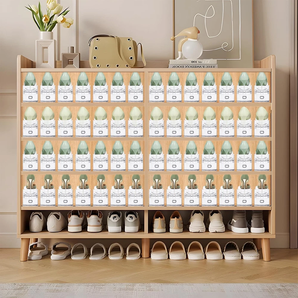 Clear Shoe Slot Organizer, 12 Pack Adjustable Shoe Slots Organizer for Closet Clear Shoe Stackers Shoe Rack Holder Shoe Space Savers for A Pair of Shoes(Transparent) DOUBLE ANTI-SLIP DESIGN: Clear shoe organizer adopts double-layer baffles to provide double protection, the small baffles can clip the heels of high heels, and the big baffles can prevent the board shoes from slipping off. THICKENED AND LENGTHED DESIGN: The length of the clear shoe slots is 27.5CM and the thickness of the shoe stacker is 0.4CM, which is thicker.Clear shoe slots can put more types of shoes and is not easy to dump. The length of other common shoe slots organizer is only 25CM, thickness 0.1CM. THREE LEVELS HEIGHT ADJUSTABLE: You can flexibly adjust the height of the shoe slot from 3.7'’ to 7.7'’, this shoe slot organiser is suitable for most shoes, it is suitable for slippers, high heels, trainers, leather shoes, ankle boots, hiking boots, stiletto heels and children's shoes. Provides an excellent space-saving solution for bedrooms, wardrobes and shoe racks. PET MATERIAL: Our shoe slot organisers are made of PET material, the shoe organizer are more transparent in appearance, sturdy and durable. The base is flatter and more stable, with a stronger load-bearing capacity, and will not be damaged by heavy pressure or frequent use. EASY TO USE AND CLEAN: Clear shoe slot organizer designed with pull holes for easy access to shoes. Meanwhile, it can be easily cleaned with water and soap for longer use.