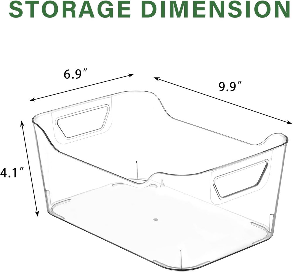 Clear Plastic Storage Bins 12 Pack Pantry Organizers Storage Clear Pantry Handle Ideal Organizers: The 9.9" L x 6.9" W x 4.1" H dimensions are ideal for organizing snacks, toys, books and most of your other stray items without taking up too much space, making it ideal for your home. Multiple Scenarios: These transparent pantry storage bins can be used anywhere in your home to make your home cleaner and more beautiful. These pantry organizers and storage are suitable for cabinets, kitchens, bathrooms, under sinks, desktop car trunks, etc. They are very beautiful, placed anywhere will not look out of place, is the first choice for home. Multi-purpose: These acrylic organizer bins are great home organizers, and you can use them to store just about anything. These pantry storage bins can be used to store snacks, drinks, toys, seasonings, cleaning supplies, tools, and any other small items that are difficult to organize. These storage bins will make your home more organized, so you can quickly find your items when you need them. Transparent and Handle Design: The transparent design of this kitchen storage organization gives you a clear view and saves you time by not having to take it out of the cabinet to find items. The handle design makes it easy for you to move them. Quality Materials and Craftsmanship: With high-quality acrylic, you can be confident in the robustness of these storage containers. Through advanced production processes, our pantry bins have smooth edges. It can be stacked when not in use to save space for you. Product Description Item Package Quantity 12 Batteries Required? No Unit Count 12.0 Count Color Transparent Material Acrylic Country of Origin China Item Weight 6.76 pounds Batteries Included? No Package Dimensions 14.61 x 10.55 x 7.28 inches Number Of Pieces 12 Complimentary Shipping and Easy Returns Need to return something? Enjoy our 30-day hassle-free return policy! Take advantage of free shipping across all 48 contiguous states! Your order will be dispatched within 1-2 business days once payment is confirmed. Your Opinion Matters! Your happiness is our main goal! We welcome your feedback! If you encounter any problems, reach out to us right away, and we’ll be here to help. Explore the Extraordinary! Our collection showcases fascinating products that are sure to capture your attention. What surprises await you? Delve in and discover unique items that enrich your daily life. Don't miss the amazing things we have in store for you!
